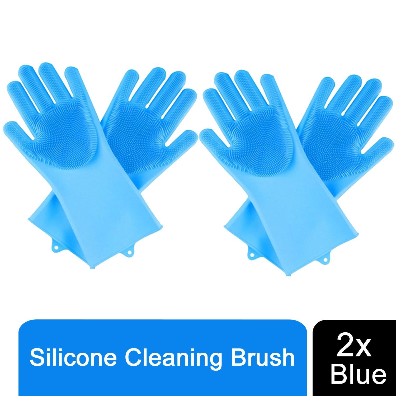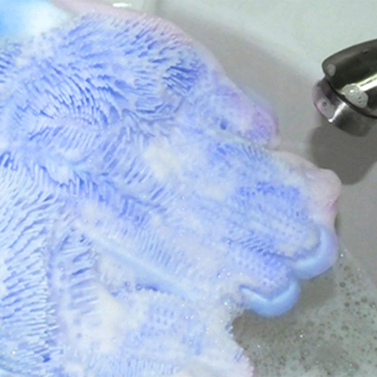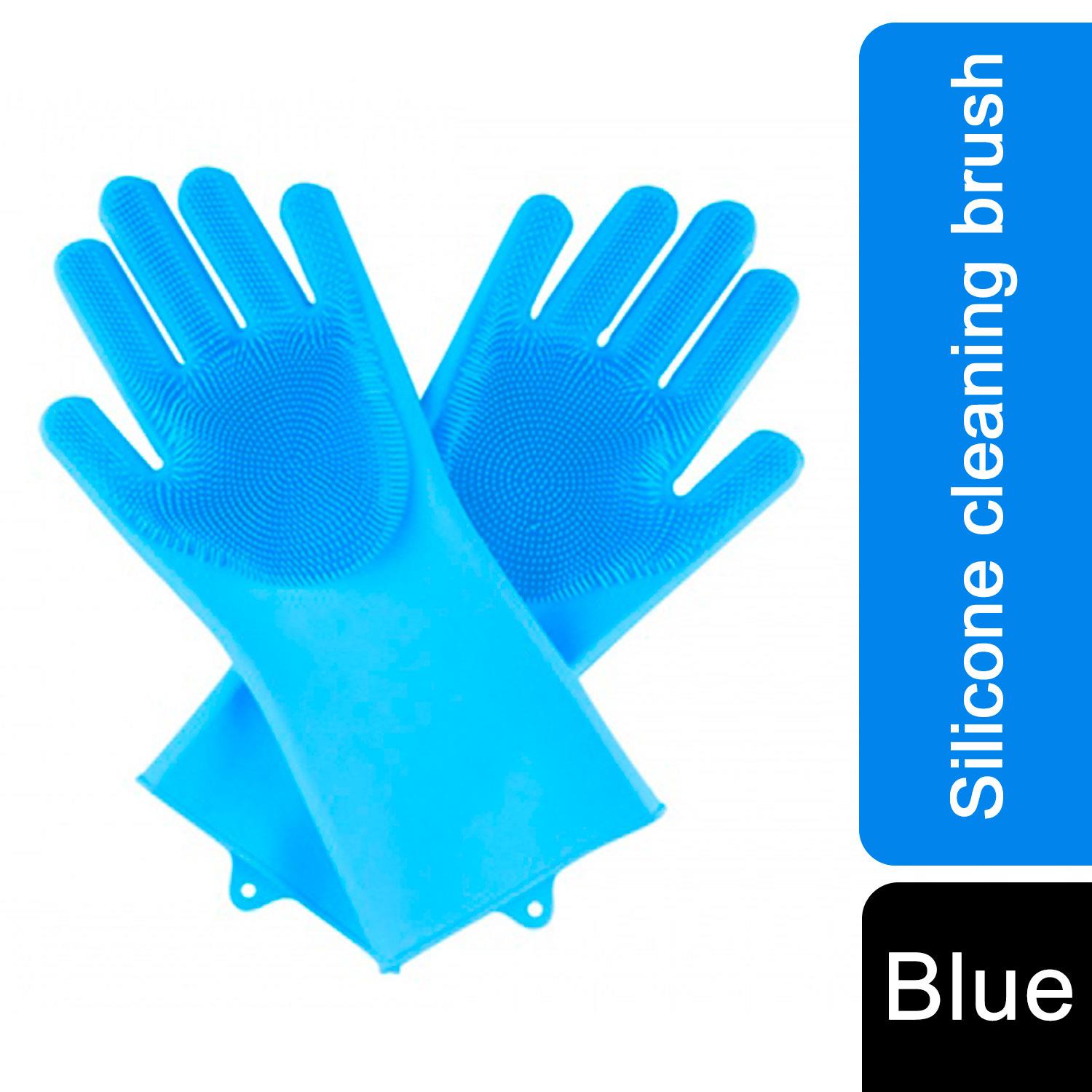 2 in1 Blue Silicone Cleaning Household, Kitchen & Pet Care Gloves with Scrubber