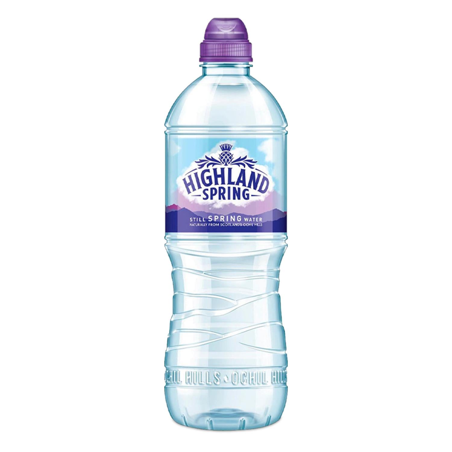 Drawn from protected organic land in the Ochil Hills, Scotland, this refreshing spring water that's as pure as can be will make you feel naturally full of the Highland joys. The handy little bottles with a sports cap in this Highland Spring Active Pack are great for keeping you hydrated when you're on the go, perfect for everyday refreshment. 750ml Active bottle in a convenient 'Boot Pack' to use when in the move! Nutrition Facts Serving Size 750 ml Energy (kJ) 0 kJ Energy (kcal) 0 kcal Fat 0 Grams of which: - Saturates 0 Grams Carbohydrate 0 Grams of which: - Sugars 0 Grams Protein 00.00 Grams Salt 00.00 Grams Potassium 0.7 milligrams (0.04% NRV) Chloride 6.1 milligrams (0.76% NRV) Calcium 40.5 milligrams (5.06% NRV) Magnesium 10.1 milligrams (2.69% NRV) Ingredients: Narurally Sourced Water Only Directions: Simply pop open the cap and drink! Please ensure to recycle afterwards Storage: Store in an odour free environment and away from direct sunlight. Once opened keep chilled and use within 7 days.Best Before End: See Neck of Bottle Warnings: Caution: Cap contains small parts, not suitable for children under 3 years. Bottle made from 100% recycled plastic. Label and cap are recyclable but are not made from recycled plastic. Widely Recycled