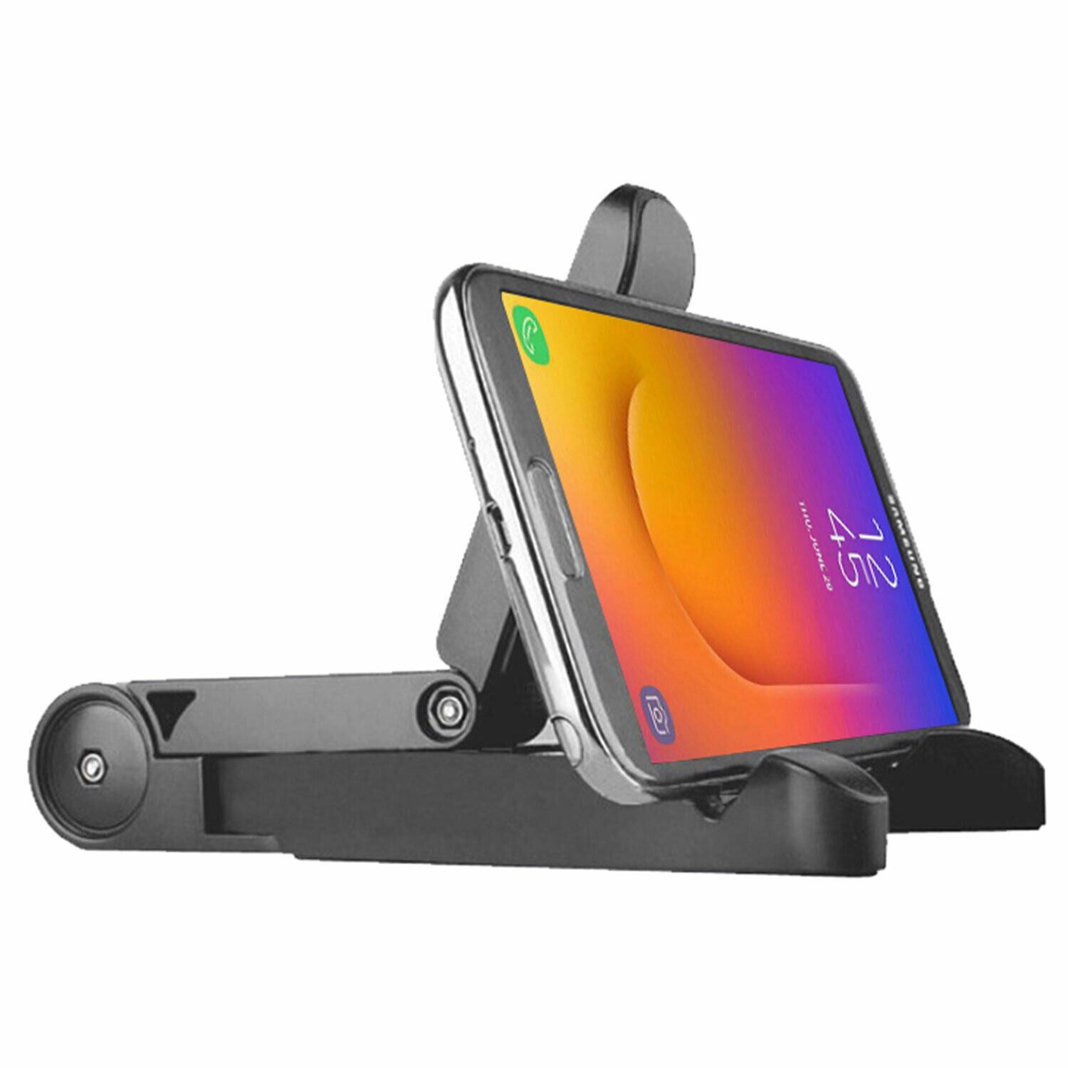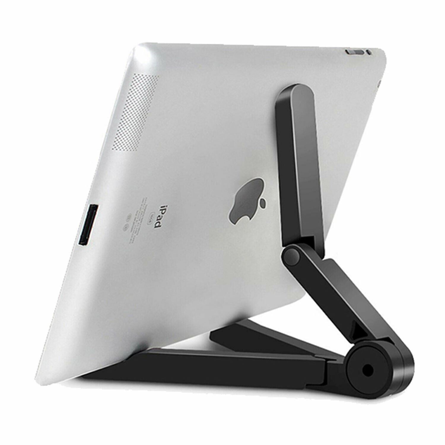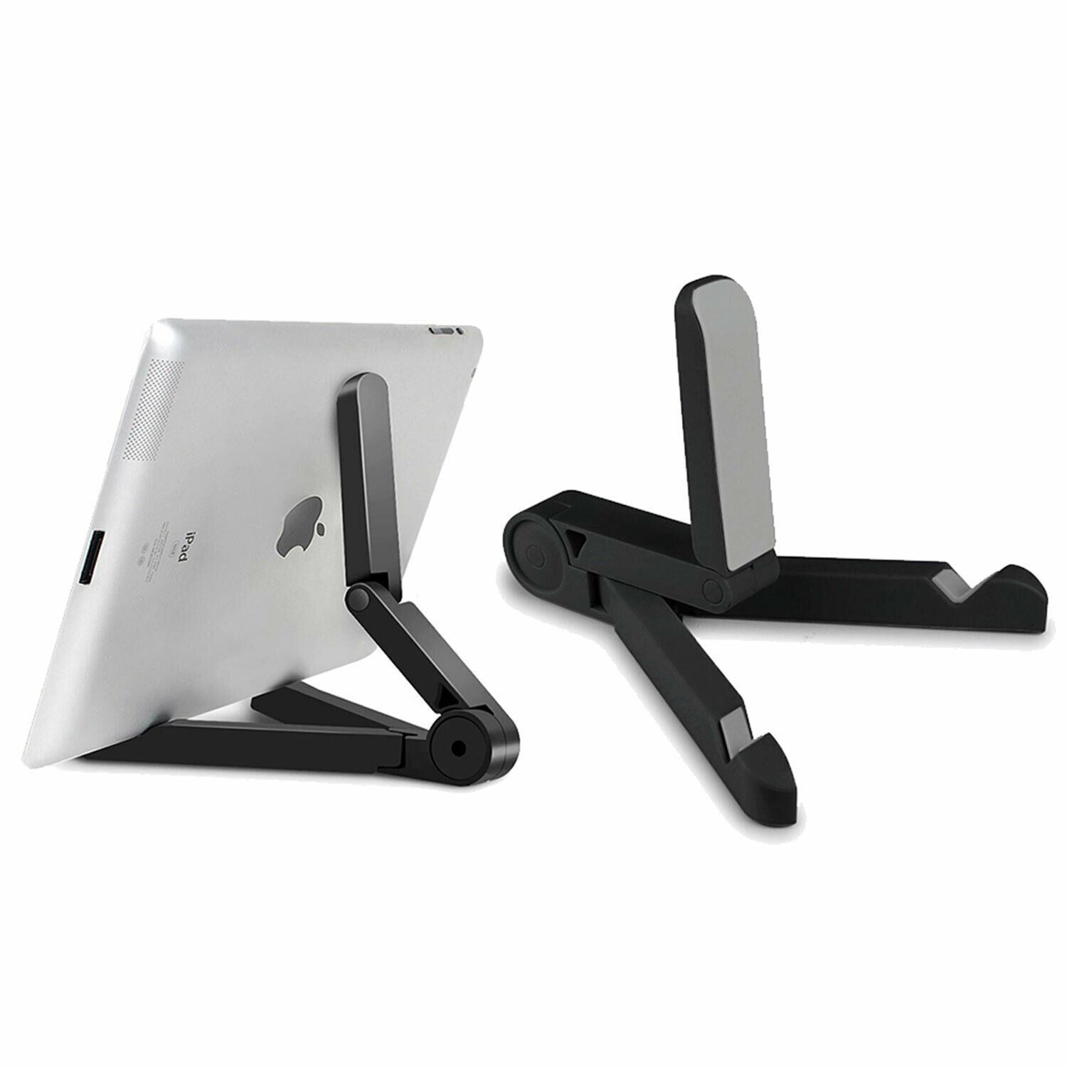 Aquarius Universal Compact Portable Adjustable Tablet Stand Mount Holder. Compatible for 7-10 inch tablet size. Keeps your device at different comfortable reading or viewing angles in either landscape or portrait view. Sturdy and durable. Small, lightweight, and foldable, stand. Position your tablet in multiple angles in landscape or portrait view for ultimate viewing pleasure. The stand can be neatly folded up and placed in a bag or even a pocket. Due to the stand's adverse design, you can easily fit your tablet device while cased on the stand. Soft foamed plates keep your tablet gripped to the device without possible scratches or wear and tear to the device's casing.