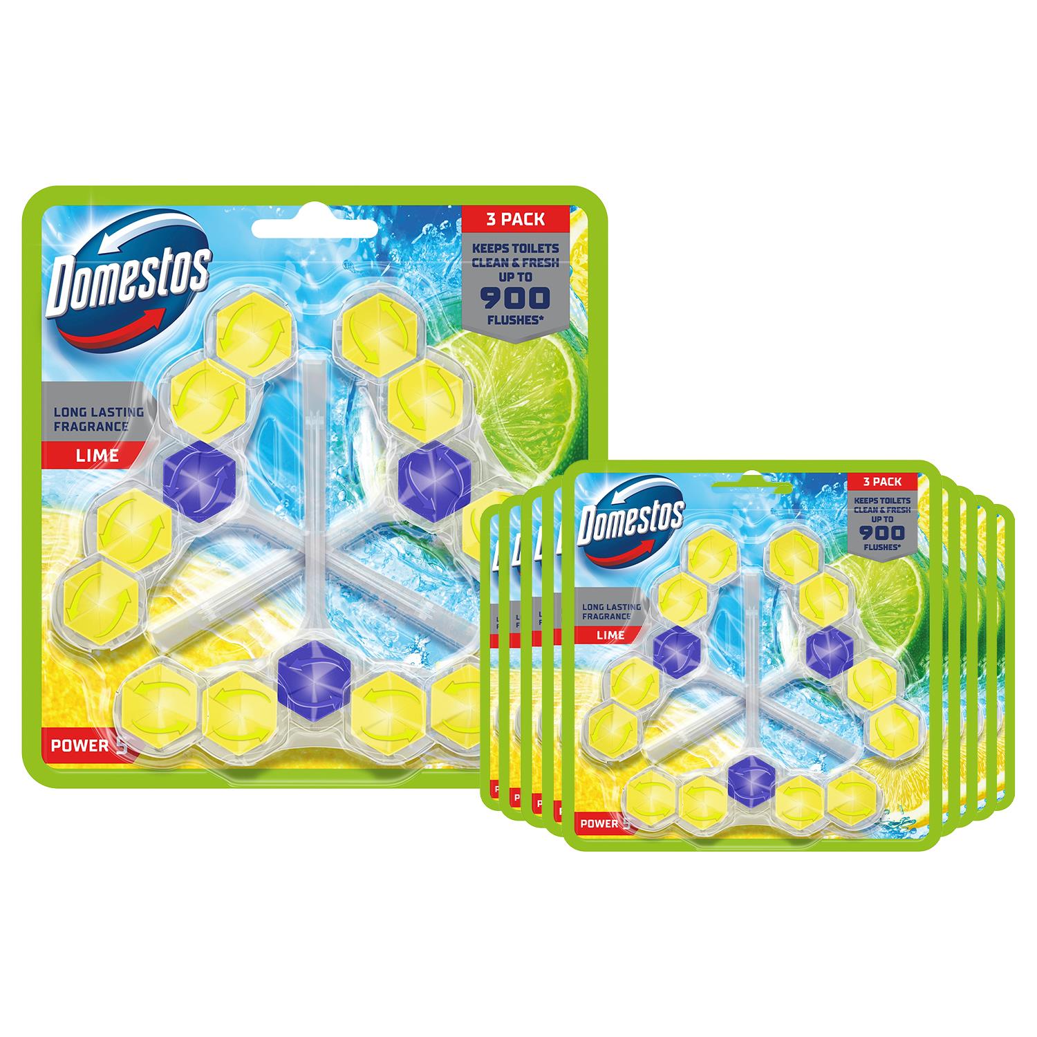 Domestos Power 5 Toilet Rim Blocks Lime Lasting Freshness 50g, 10pk (30 Blocks)