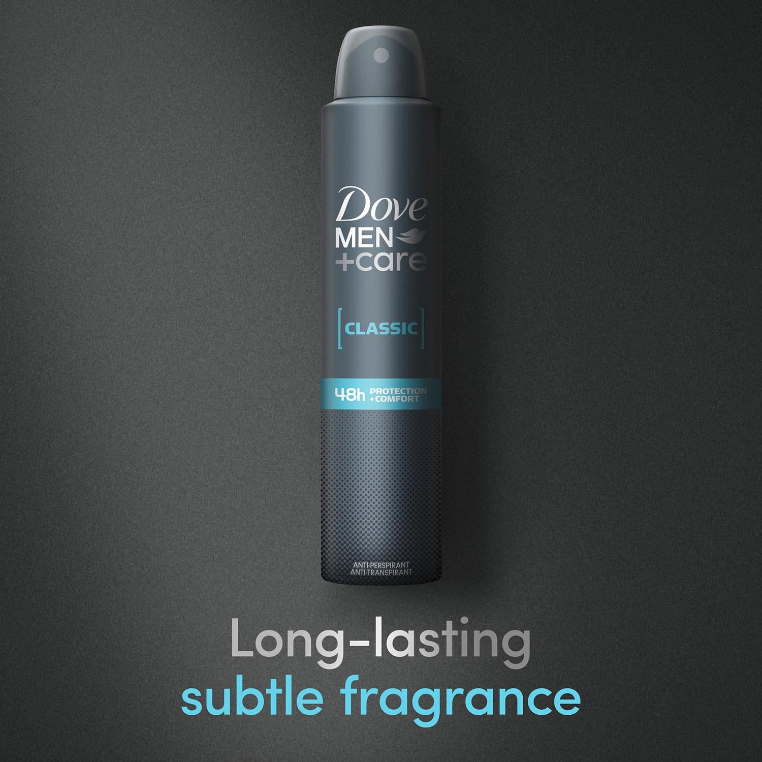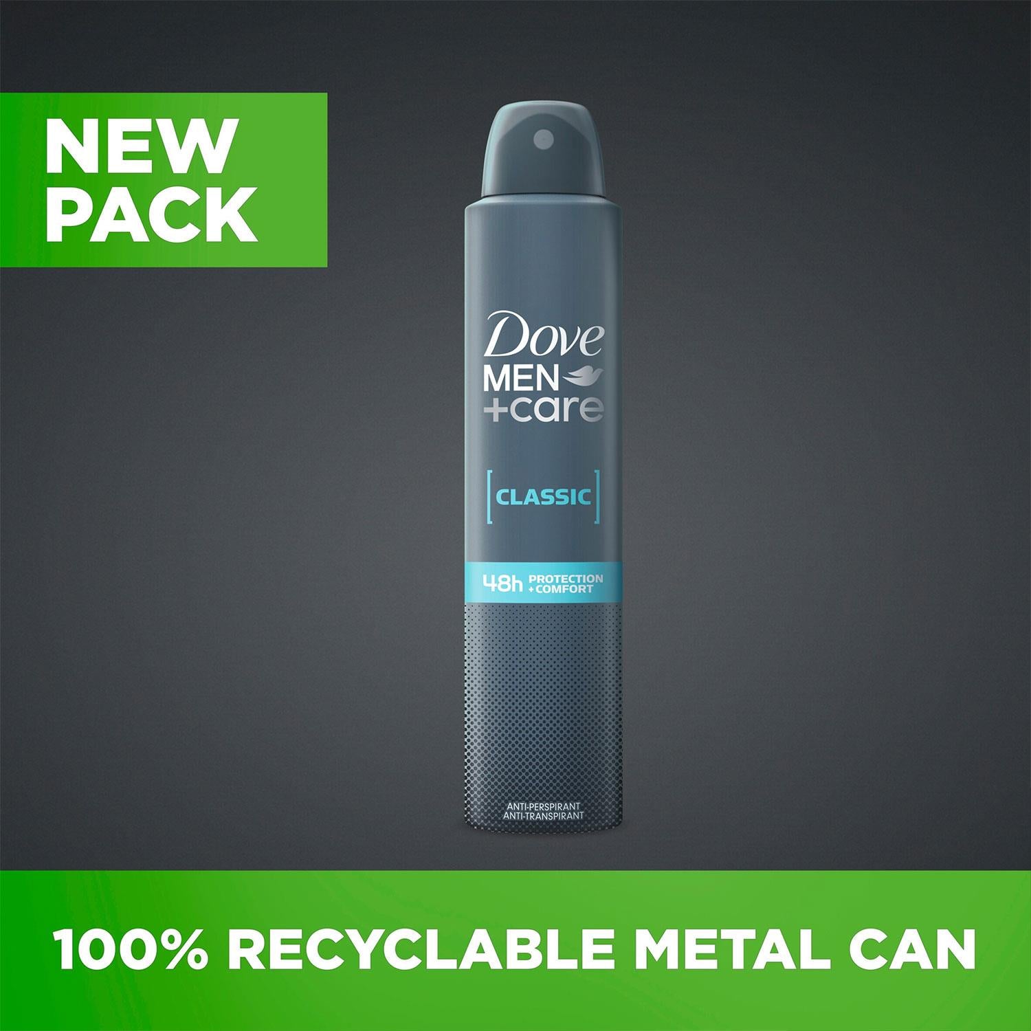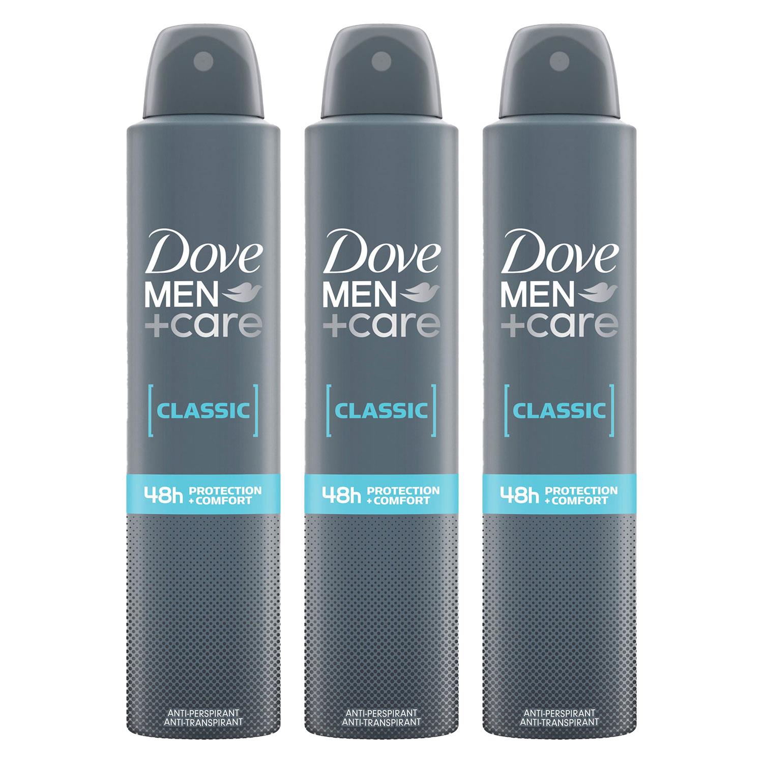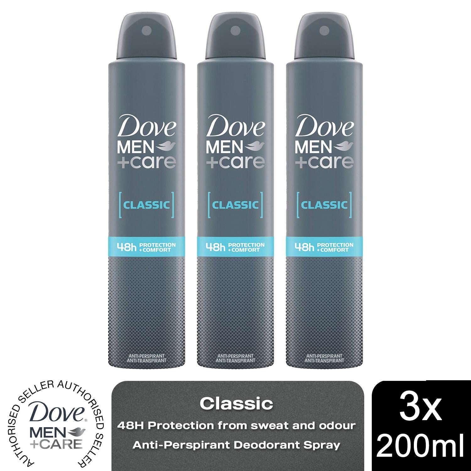 Box Contains: 3x Dove Men+Care Classic Antiperspirant Deodorant Spray, 200ml
