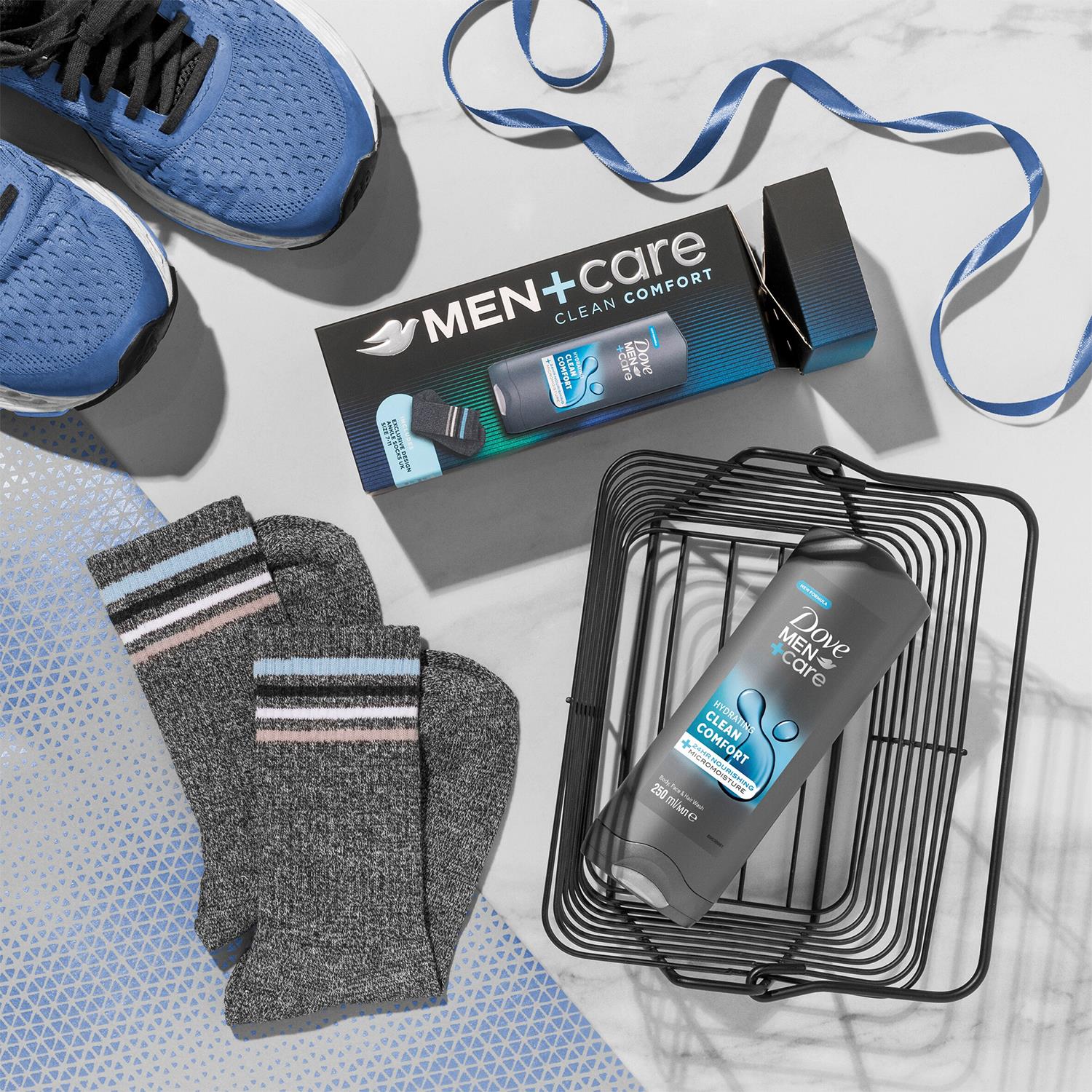 • Dove Men+Care Clean Comfort Body Wash & Socks Gift Set features two gifts for him: a full-size Dove Men+Care body wash and a pair of exclusive ankle socks