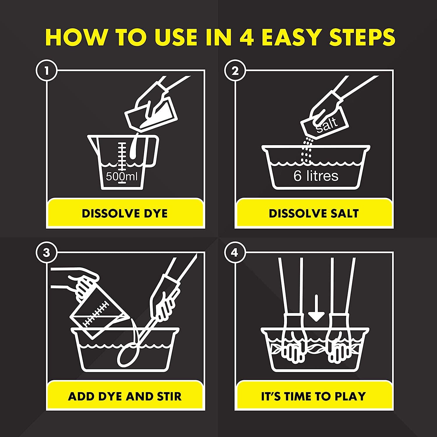 These fabric dyes for hand use are perfectly suited for smaller items like shorts, vests, gloves or scarves, and for delicates, you'd rather not put in the washing machine like wool and silk.