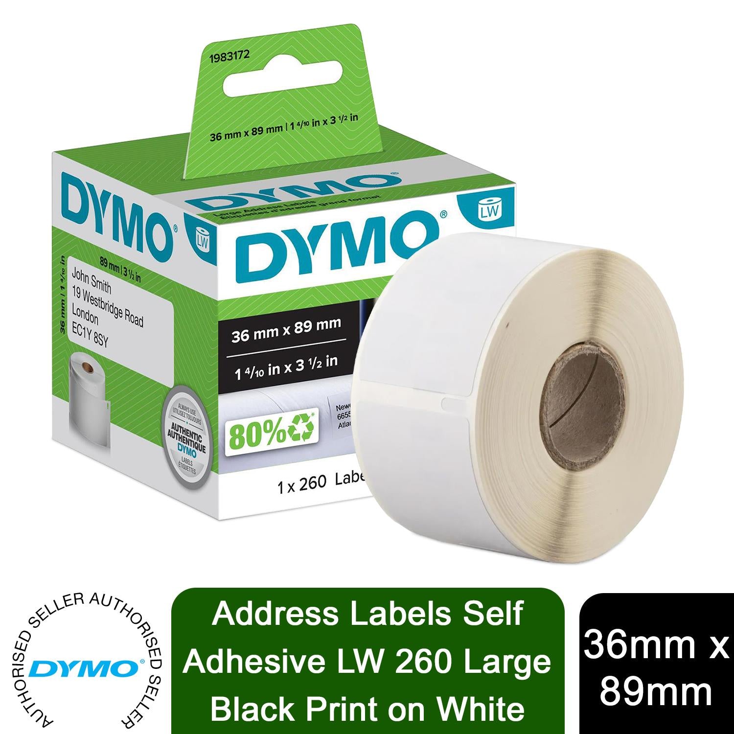 Package contains: 1 Pack of DYMO Self Adhesive LW Large Address Labels,1 Roll of 260 Labels