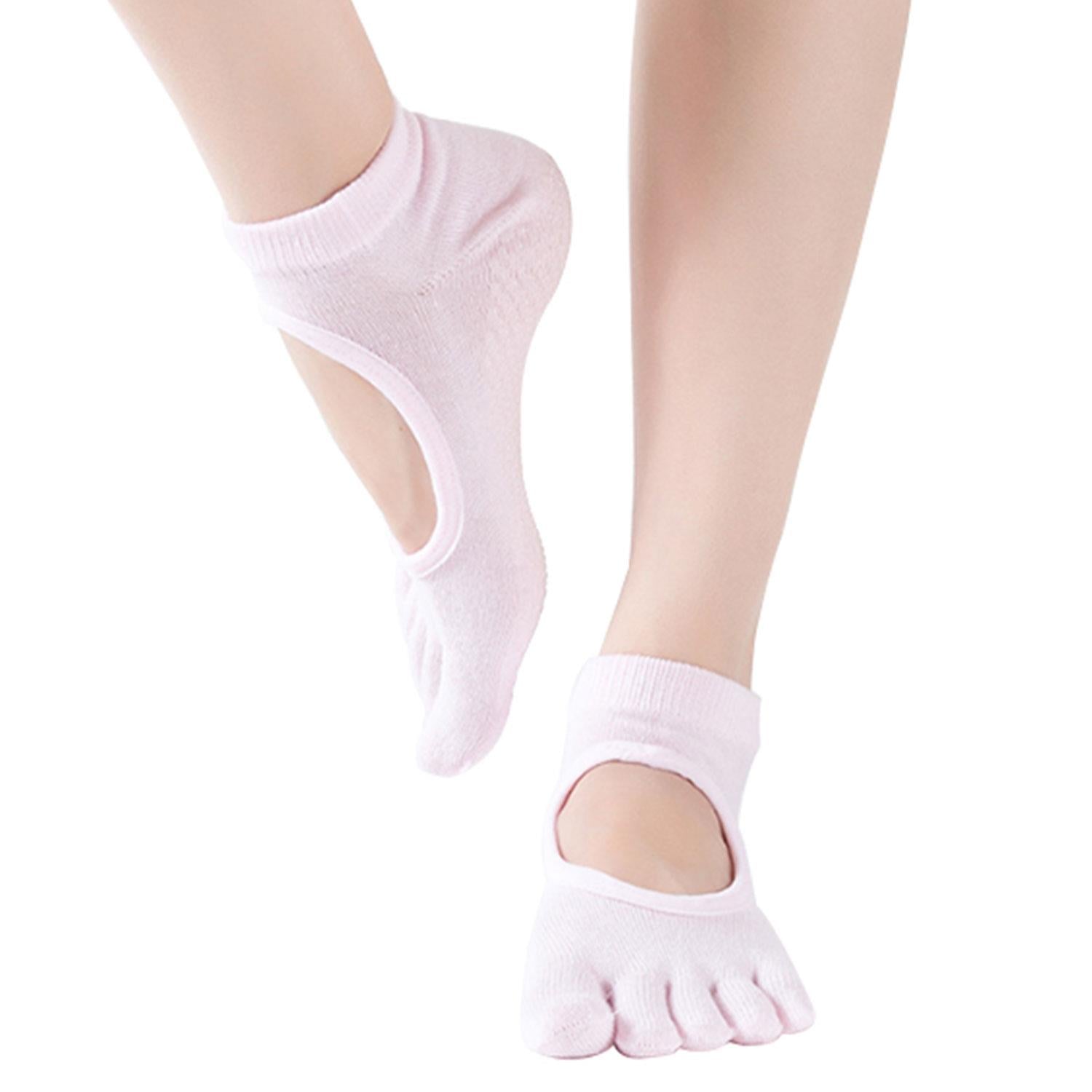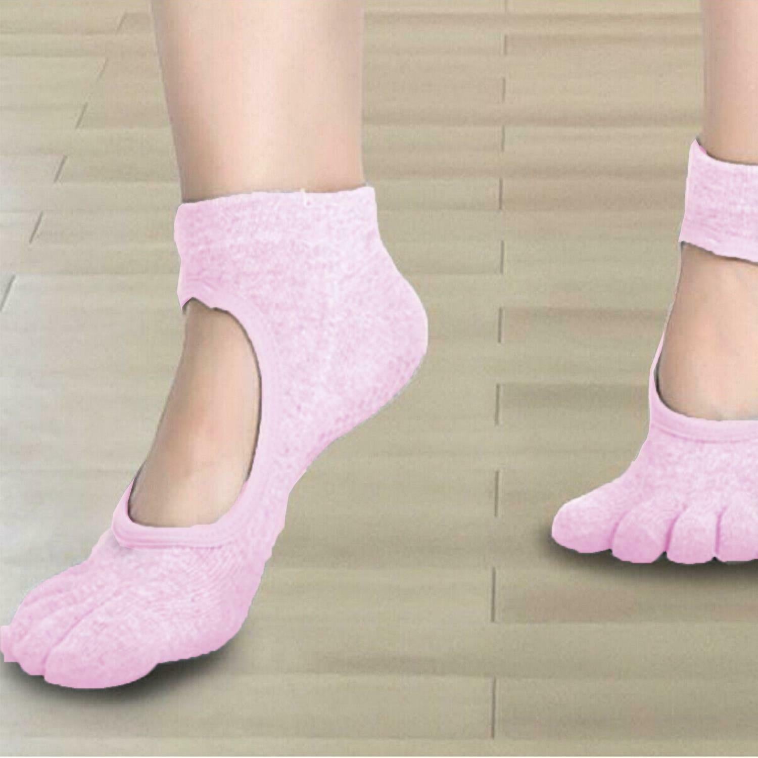 Flo Fashion Women's Full Toe Non-Slip Grip Yoga Sports Socks, Baby Pink