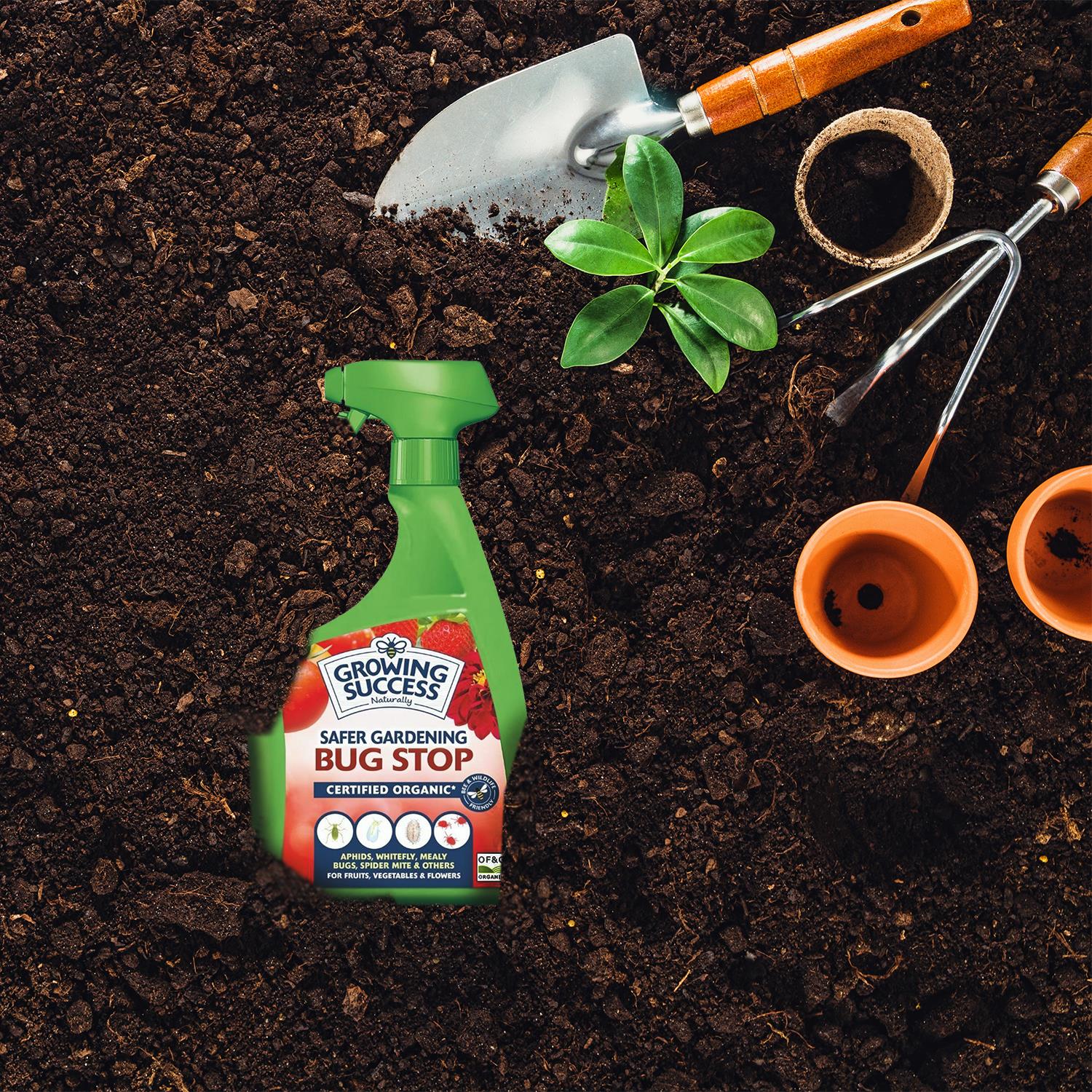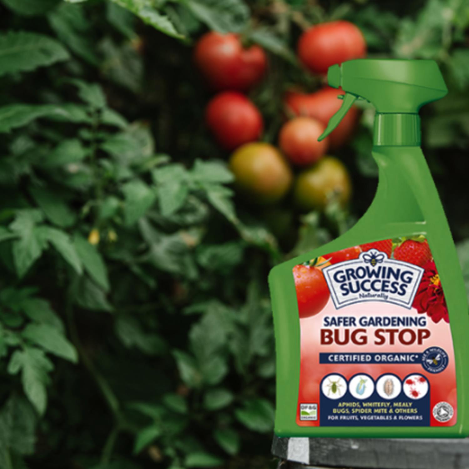 Growing Success Bug Stop is a pesticide-free alternative to help prevent bugs on fruits, vegetables and flowers as well as ornamental plants. Its formulation contains natural ingredients and will not harm beneficial insects such as bees and ladybirds. It works by promoting a plant reaction to defend itself against a wide range of pests such as Aphids, Whitefly, Greenfly, Mealybugs and more.