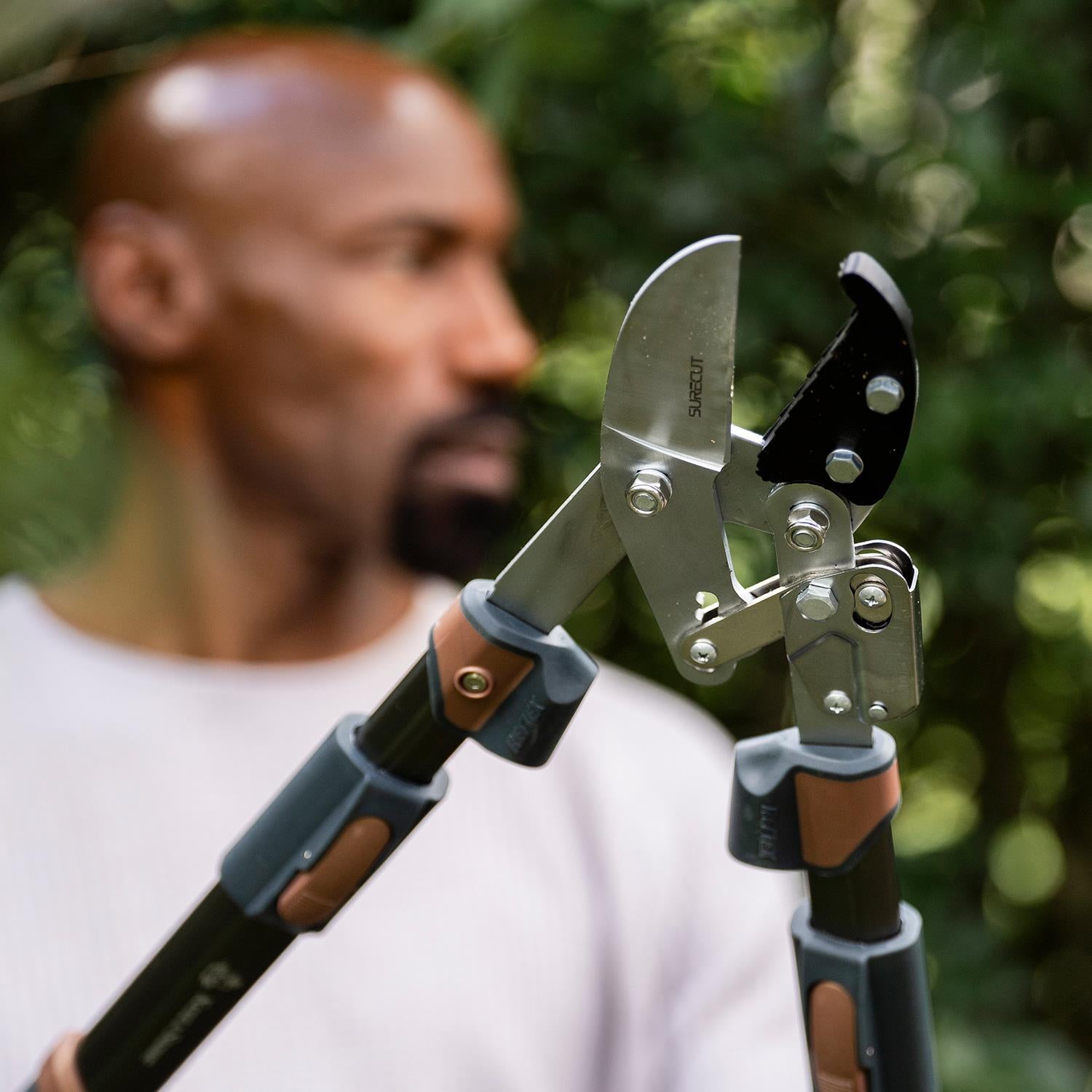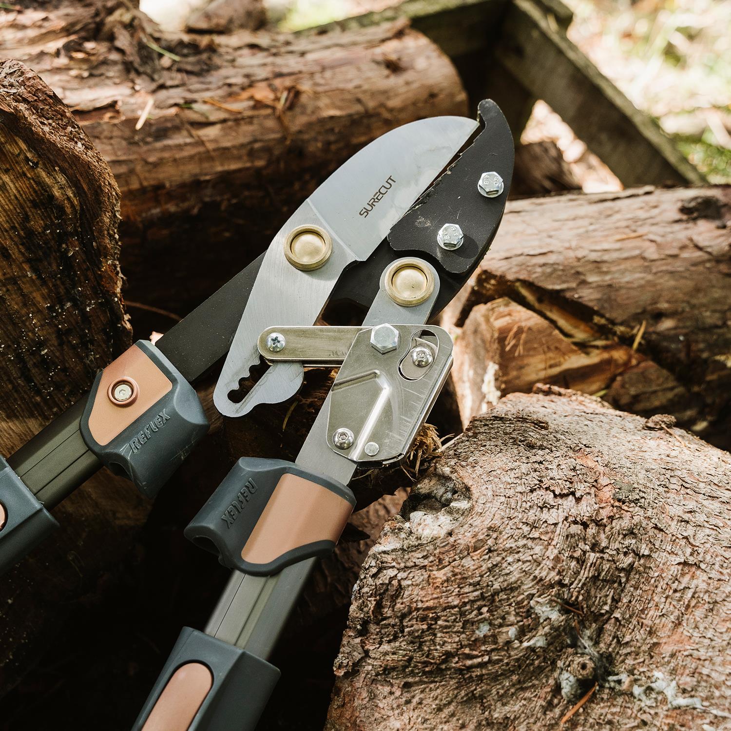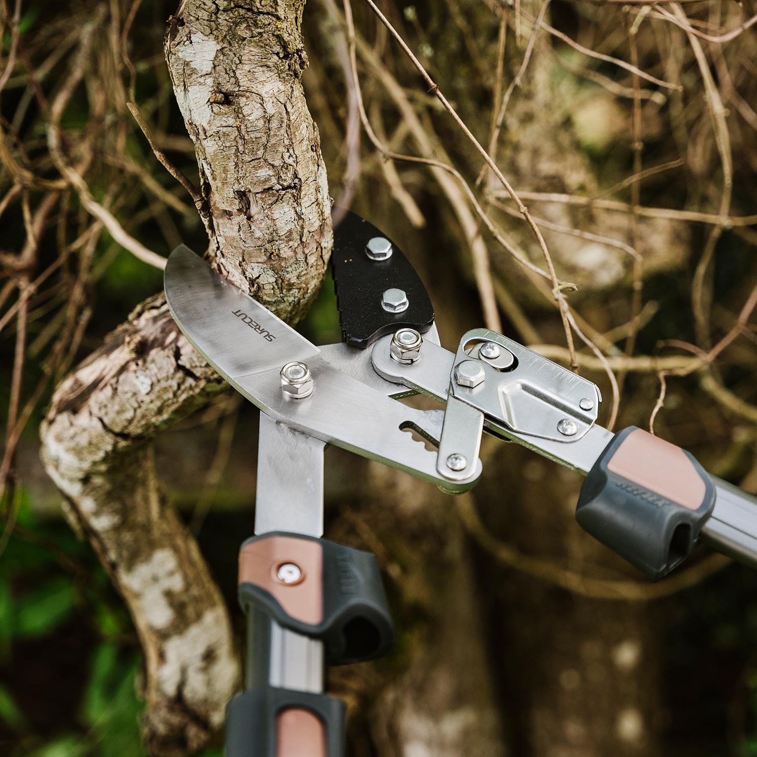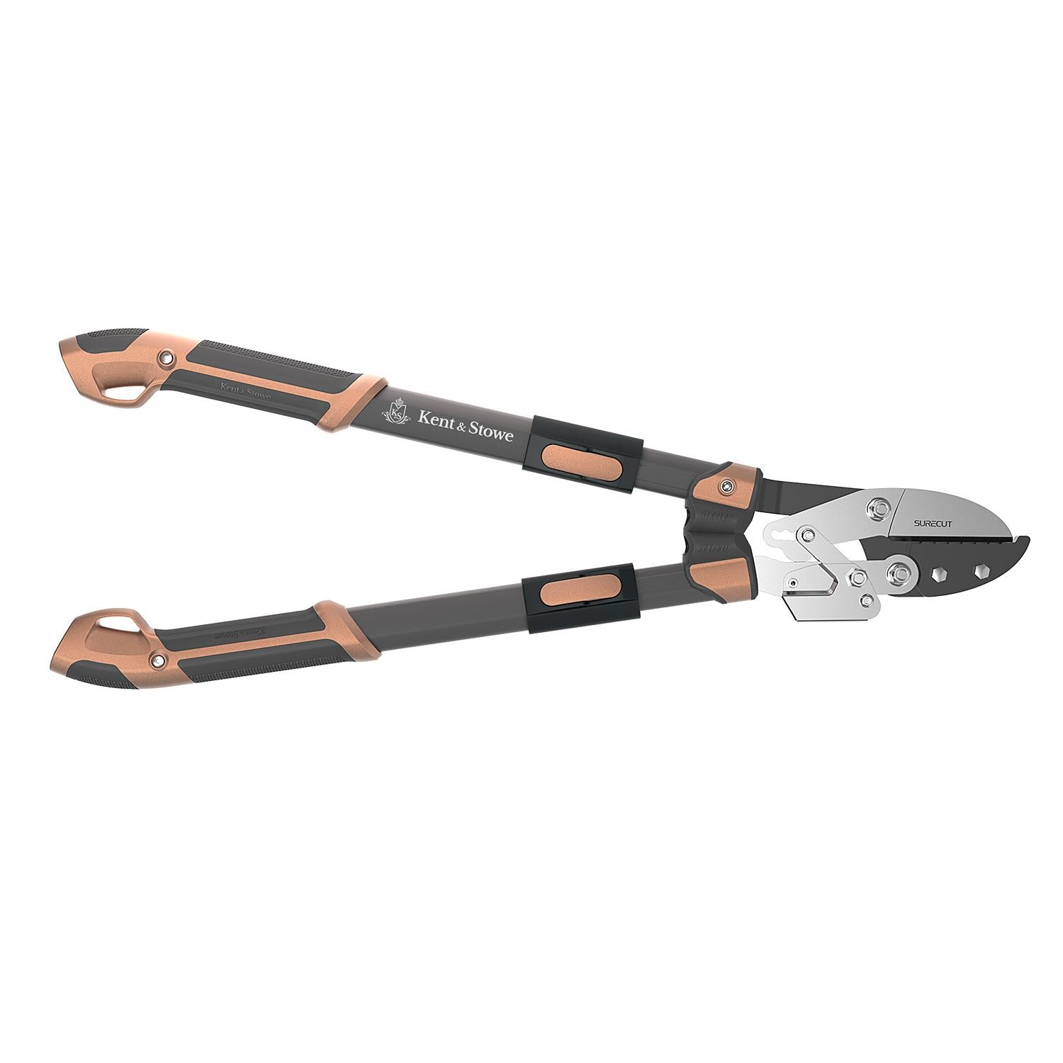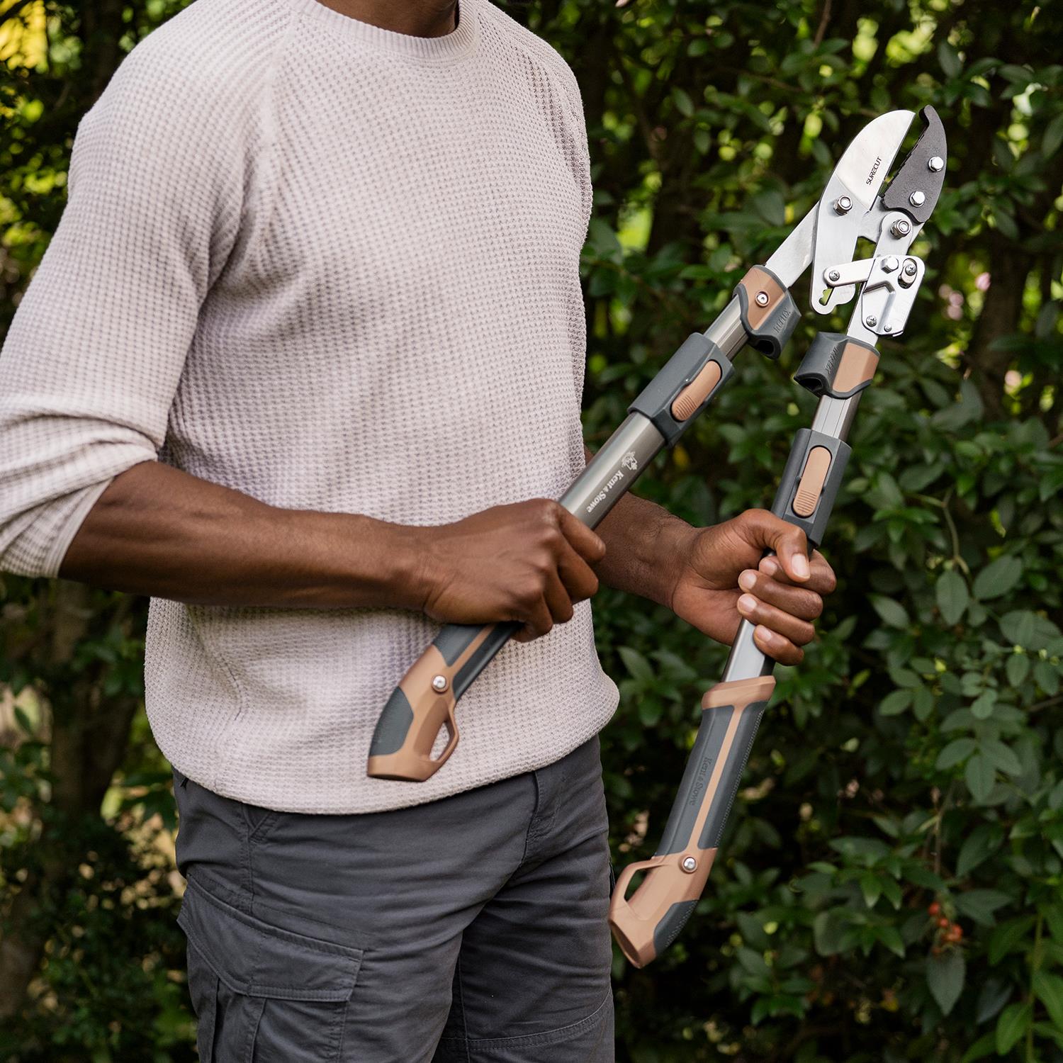 Kent and Stowe KS Surecut Hard Wood Extra Power Geared Anvil Lopper 40mm Kent & Stowe Surecut Hard Wood Extra Power Geared Anvil Lopper with Carbon steel blades with Chrome coating for a precise clean cut every time. Built-in Reflex Energy System for maximum cutting power with reduced effort. Extendable telescopic handles for extra power and reach. With rubber, micro hex handles for extra comfort and grip. Ideal for powerful pruning of hard, dead wood. Includes hanging loop for easy storage. Features: Kent & Stowe Surecut Hard Wood Extra Power Geared Anvil Lopper with Carbon steel blades with Chrome coating for a precise clean cut every time Built-in Reflex Energy System for maximum cutting power with reduced effort Extendable telescopic handles for extra power and reach With rubber, micro hex handles for extra comfort and grip Ideal for powerful pruning of hard, dead wood. Cutting diameter 40mm Box Contains: Kent and Stowe KS Surecut Hard Wood Extra Power Geared Anvil Lopper 40mm