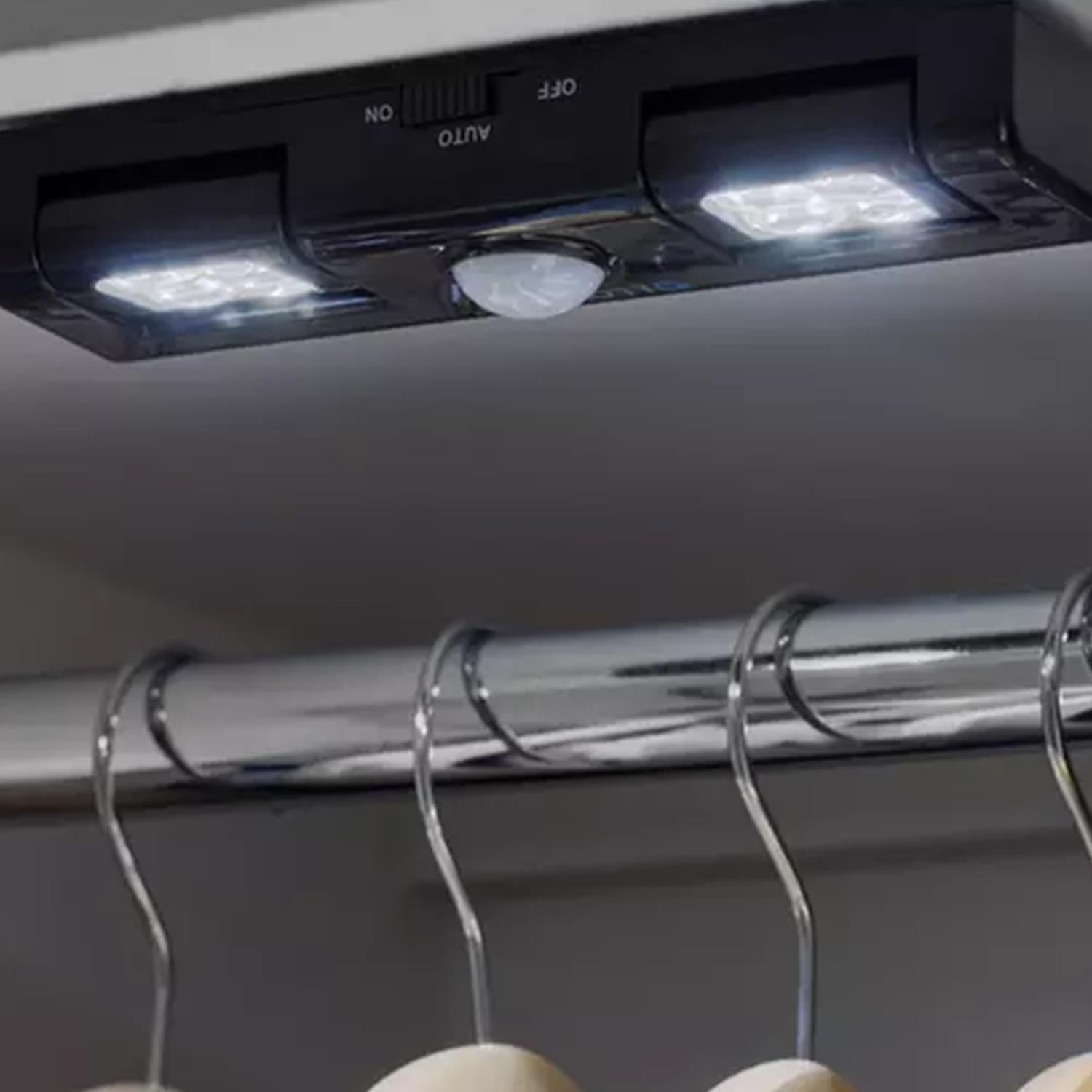 16 Bright LED Cupboard Sensor Lights Battery Operated Automatic PIR 1M Radius new Ideal for sheds, cupboards, and other dark places comes in black colour automatic PIR Sensor immediately picks up movement (1 M radius max.)Integral ON/OFF switch with AUTO PIR function16 bright LED'sAdjustable angles lighting banksLight activates for 20secs when on PIR setting includes a double-sided sticky pad or can be mounted using screws (not included)Uses 3 x AA batteries (not included)No wires required