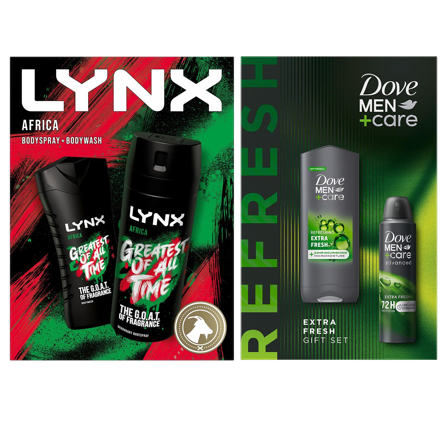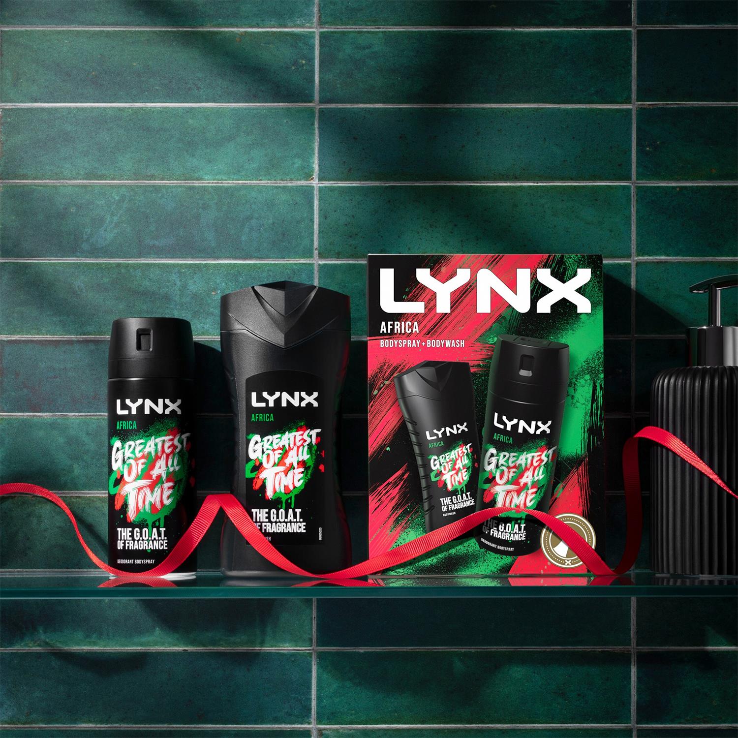 • Lynx Africa Greatest of All Time: 1x Body Spray G.O.A.T, 150ml, 1x Body Wash G.O.A.T. 225ml