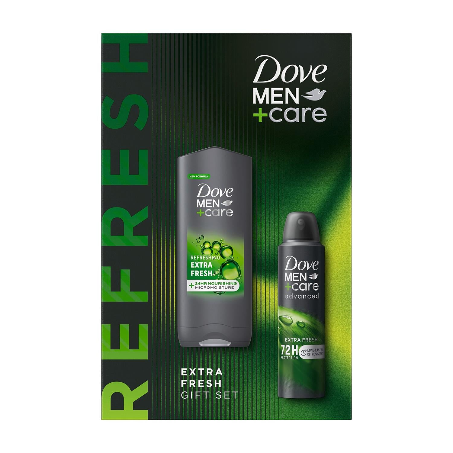 • Dove Men+Care Extra Fresh Gift Set includes two full-size gifts for him: a 3-in-1 hair, body & face wash and an antiperspirant deodorant
