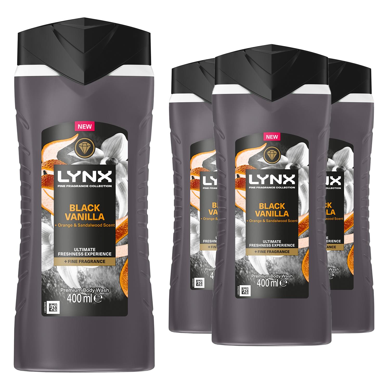 Experience the ultimate freshness with the LYNX Fine Fragrance Collection. Everyone deserves a hype man, so weve made one in body cleanser form. Our world-renowned perfumers have crafted the Black Vanilla Premium Body Wash with an indulgent vanilla, orange and sandalwood scent infused with orange essential oil. Using 2x more freshness-boosting technology than our standard body wash formula, this shower gel kicks odour to the kerb and leaves you smelling irresistibly fresh for up to 12 hours. PETA-Approved Vegan, it contains 100% plant-based moisturisers to hydrate your skin every time you shower. To indulge in a multi-sensory shower experience, squeeze out the LYNX body wash into your hands and work into a rich, creamy lather. Massage it all over your body and rinse thoroughly, revealing clean, fresh-smelling skin. Avoid contact with eyes. Loving the fragrance of our body wash for men? LYNX Black Vanilla is also available as a body spray and deodorant stick to give you 72 hours of top-notch odour protection. This premium body wash comes in a recyclable bottle please, do your part and recycle. By 2025, LYNX aims for all our packaging to be recyclable or to include recycled materials. Welcome to the future. It smells amazing. LYNX.