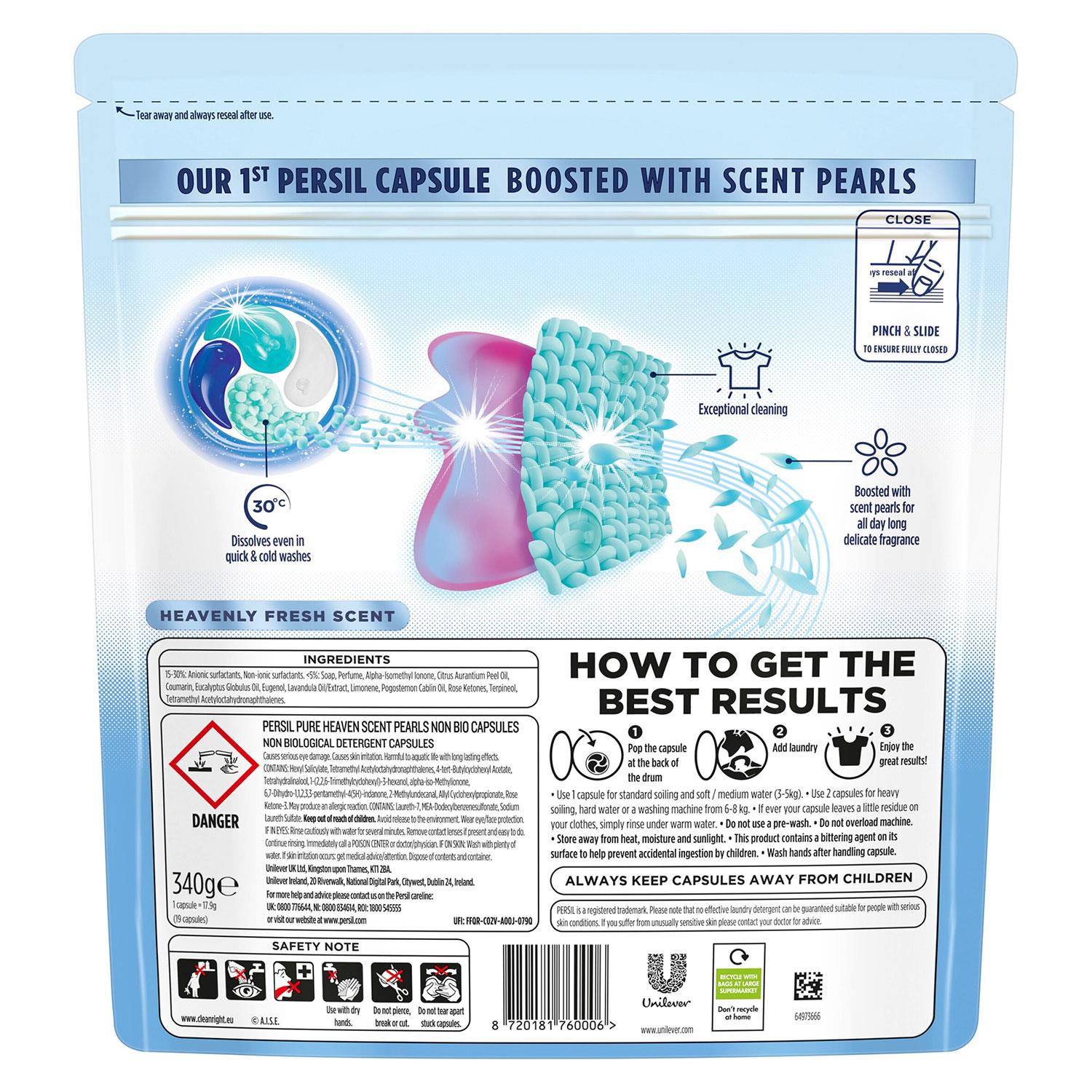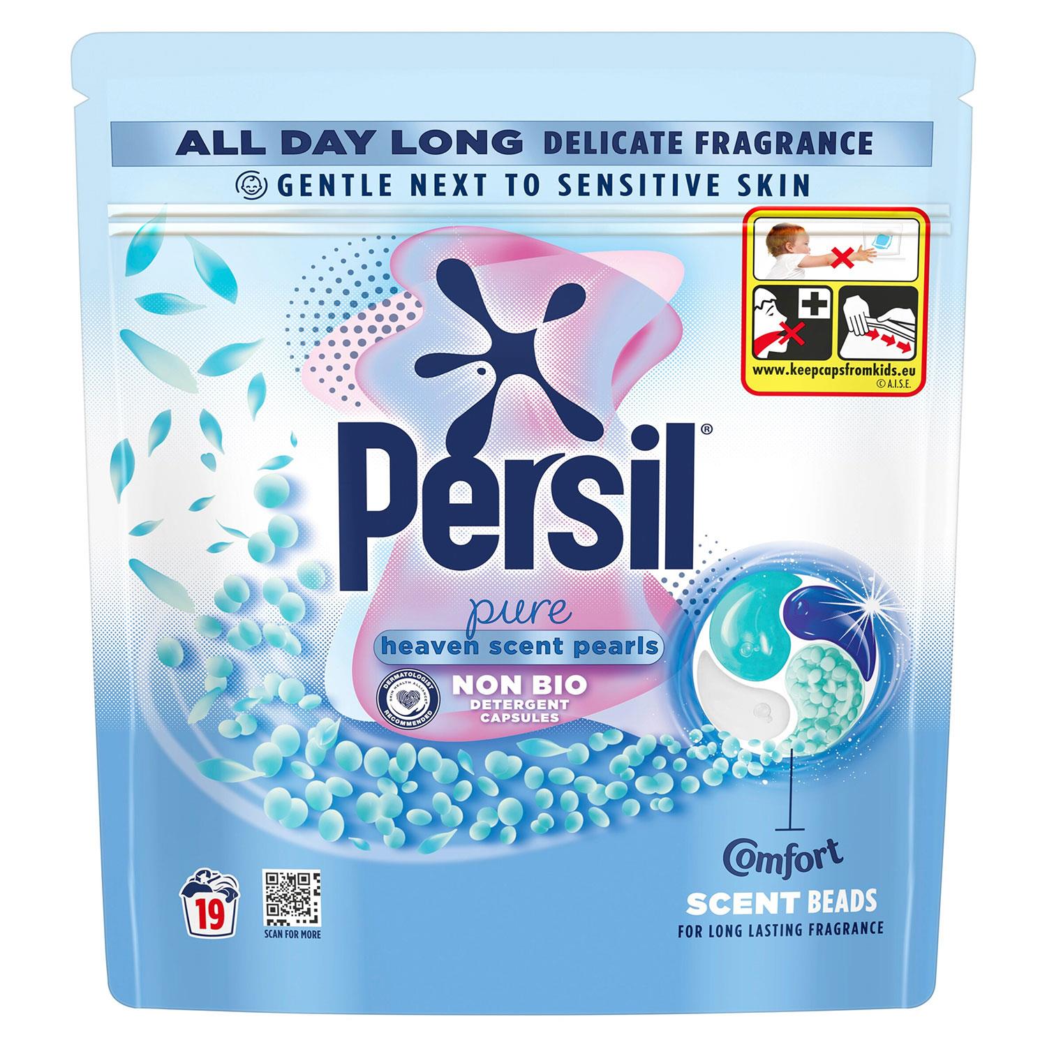 Persil Washing Capsules Pure Heaven Scent Non-Bio 19 Washes Persil Washing Capsules Pure Heaven Scent Non-Bio 19 Washes offer a convenient and powerful solution for gentle yet effective laundry care. These capsules are formulated to tackle everyday stains while being kind to sensitive skin, making them ideal for family laundry. Each capsule delivers a precise dose of detergent, ensuring consistent results without the need for measuring, leaving clothes fresh, soft, and hygienically clean with a long-lasting Pure Heaven fragrance. Features Convenient capsule format - easy to use, no measuring required Non-Bio formula - gentle on sensitive skin and delicate fabrics Powerful stain removal - tackles everyday laundry stains effectively Fresh Pure Heaven fragrance - long-lasting scent on clothes How to Use: Place one capsule directly into the drum of the washing machine before adding laundry. Use one capsule per standard load. Suitable for all water temperatures and washing programs. Do not puncture or cut the capsule. Keep capsules dry until use and store away from children. Safety Warning: Keep out of reach of children. Avoid contact with eyes. Box contains: 3x Persil Washing Capsules Pure Heaven Scent Non-Bio 19 Washes