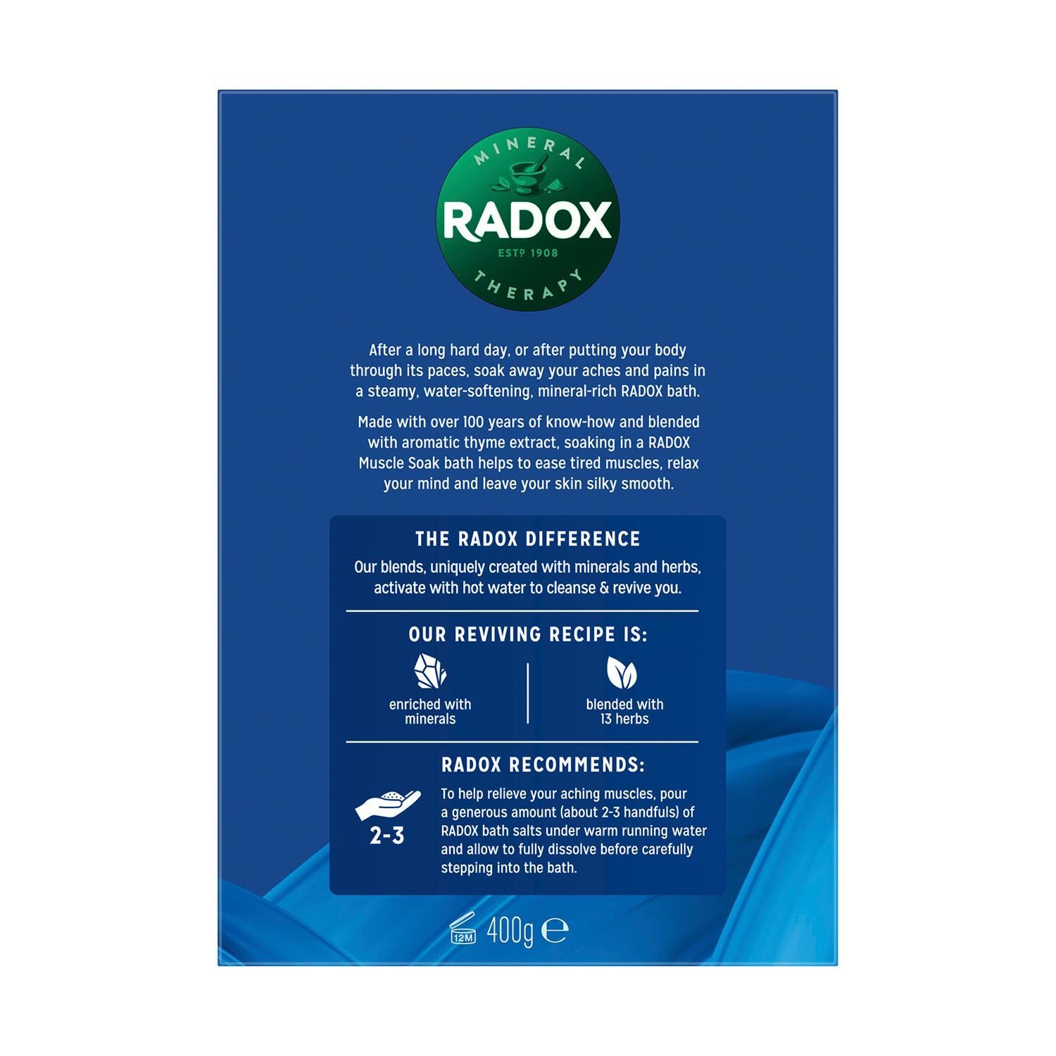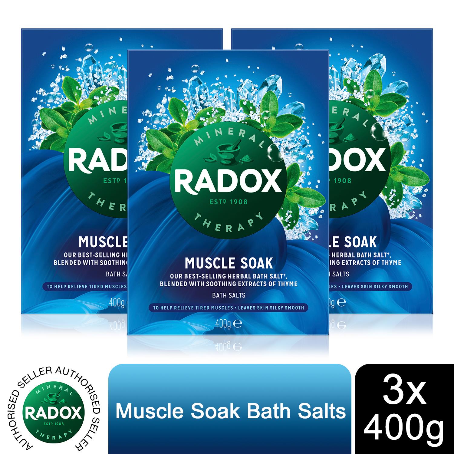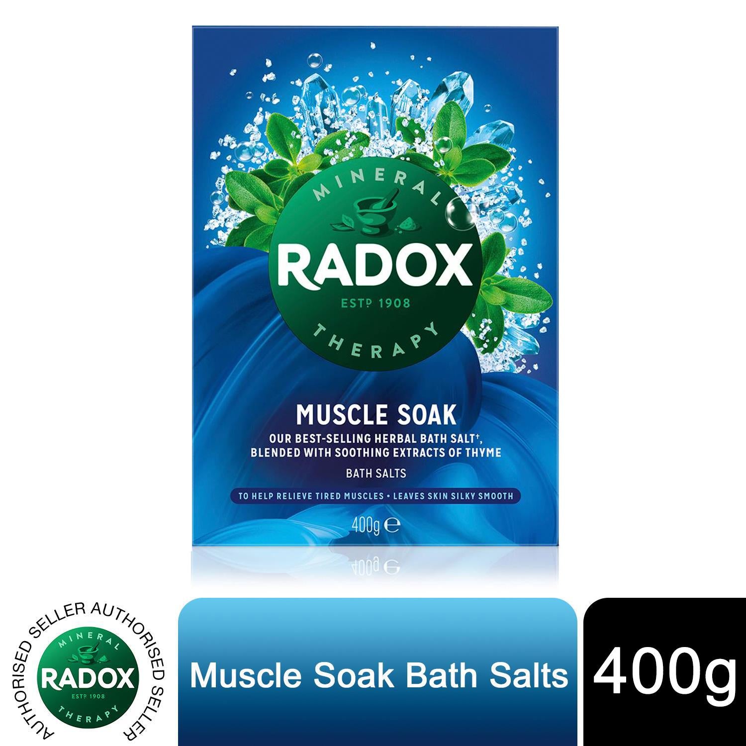 Radox muscle soaks bath salts can help you relax and unwind after a long and tiring day as these bath salts are rich in minerals which can help to ease tired and aching muscles. They are expertly blended with Thyme which is a natural ingredient known to soothe and relax not only will your whole body feel instantly energised the moment you step into the bath but you will be left smelling ideal the moment you step out. Radox has been soothing tired limbs since 1908 when our original bath salts for aching feet began our long success in mixing minerals and herbs into relaxing blends. More than 100 years later we're still searching nature for the blends of soothing and rejuvenating ingredients we use. Chamomile, eucalyptus, green and white tea, jasmine, thyme, lotus flower and orange blossom, rosemary, calendula and rose are just some of the natural extracts that enrich our products and your experience - all chosen for their ability to relax and refresh. Features: Expertly blended with thyme to help soothe muscular aches and pains Relax in a hot bath of Radox muscle soak herbal bath salts Mineral-rich natural salts which help ease tired and aching muscles Soak away your aches and pains in a steamy bath containing 100 years of Radox know-how How to Use: Pour a generous amount (approximately 2 handfuls) of Radox Muscle Soak Herbal Bath Salts under warm running water and allow them to dissolve fully before carefully stepping into the bath. Safety Warning: Avoid getting into the eyes. If you do, rinse well with cool, clean water. Please take care when stepping out of the bath as it may be slippery. Ingredients: Maris Sal, Sodium Sesquicarbonate, Aqua, Isopropyl Myristate, Parfum, Propylene Glycol, Sodium Carbonate, Sodium Lauryl Sulfate, Thymus Vulgaris (Thyme) Flower/Leaf Extract, Linalool, CI 42090, CI 77007 Package Includes: Radox Muscle Soak Bath Salts - 400 g (Select option from dropdown)