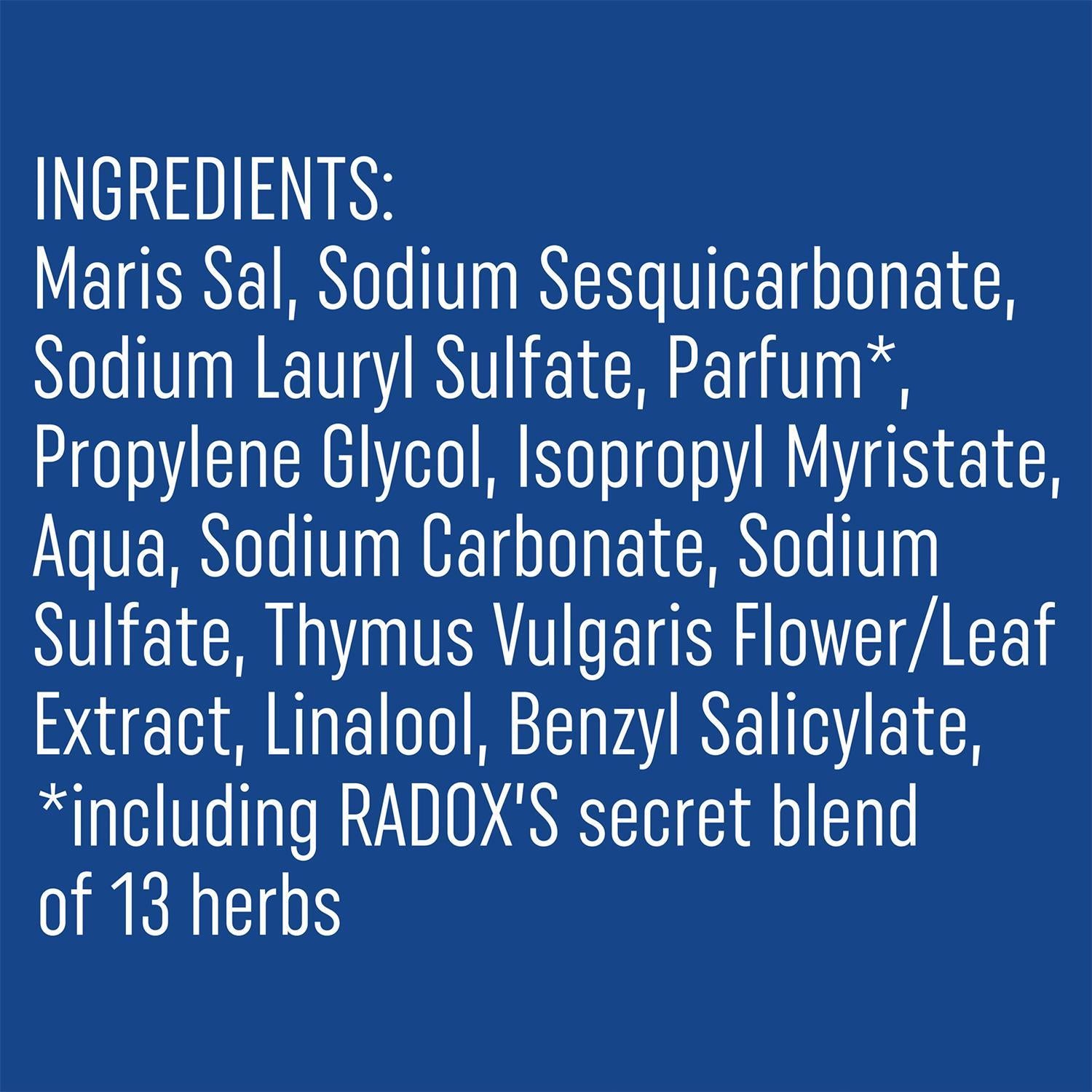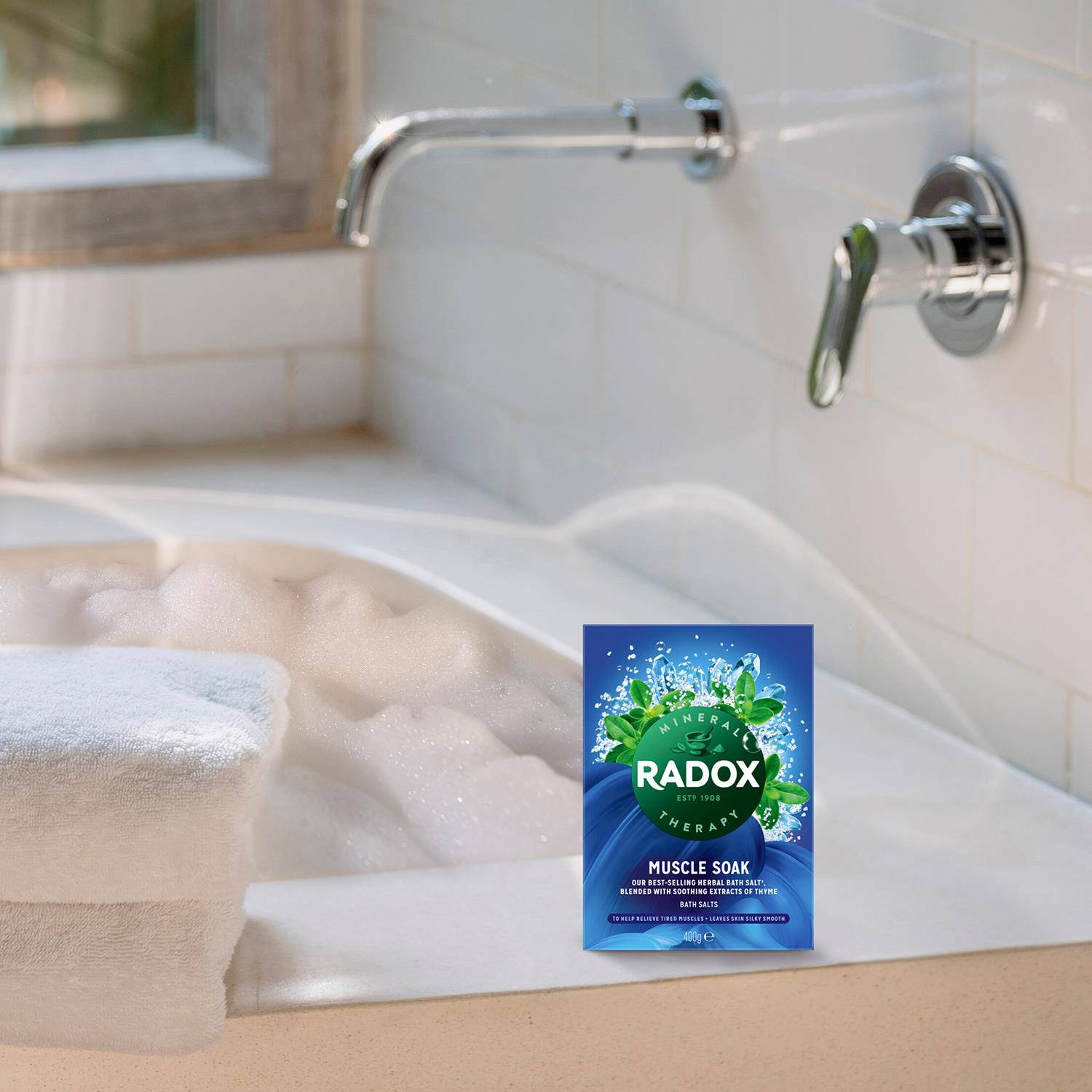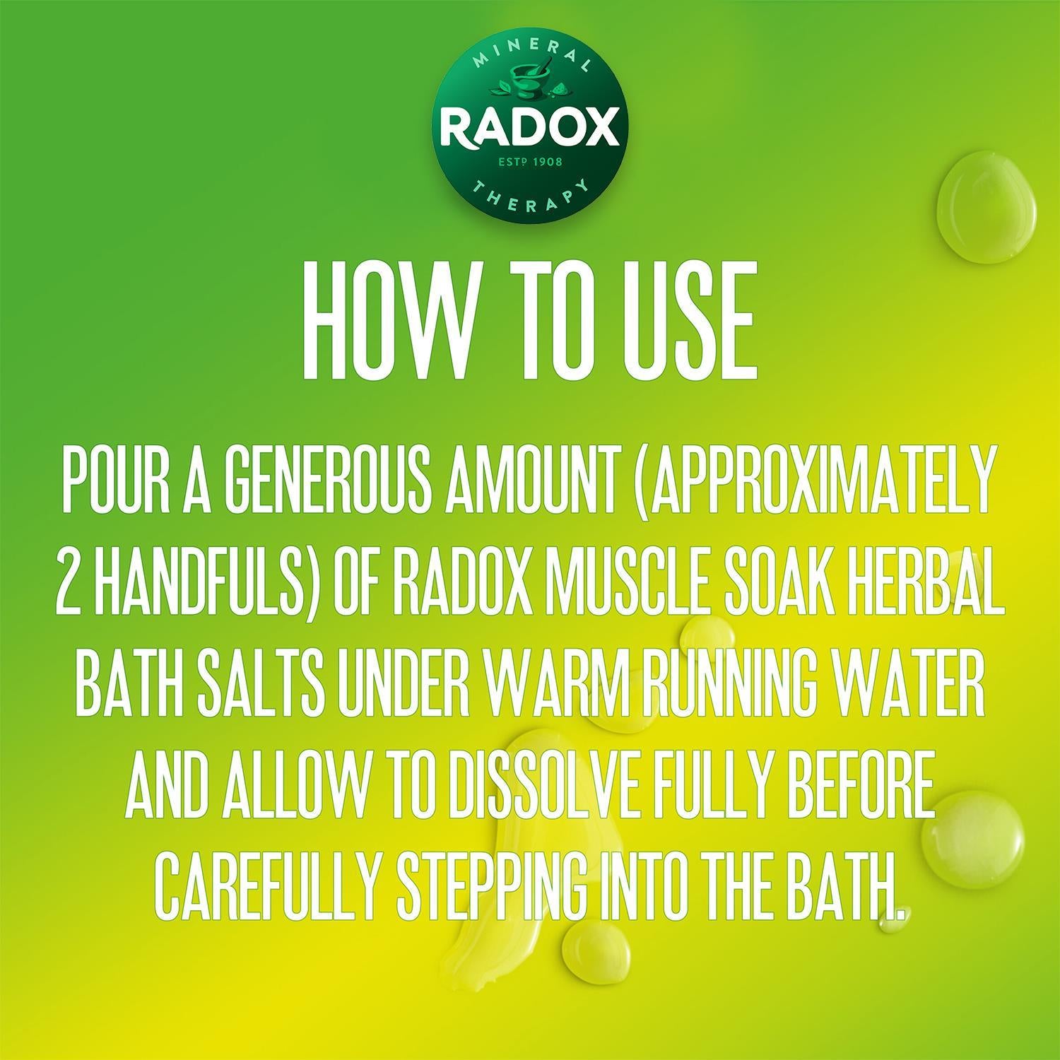 Radox muscle soaks bath salts can help you relax and unwind after a long and tiring day as these bath salts are rich in minerals which can help to ease tired and aching muscles. They are expertly blended with Thyme which is a natural ingredient known to soothe and relax not only will your whole body feel instantly energised the moment you step into the bath but you will be left smelling ideal the moment you step out. Radox has been soothing tired limbs since 1908 when our original bath salts for aching feet began our long success in mixing minerals and herbs into relaxing blends. More than 100 years later we're still searching nature for the blends of soothing and rejuvenating ingredients we use. Chamomile, eucalyptus, green and white tea, jasmine, thyme, lotus flower and orange blossom, rosemary, calendula and rose are just some of the natural extracts that enrich our products and your experience - all chosen for their ability to relax and refresh. Features: Expertly blended with thyme to help soothe muscular aches and pains Relax in a hot bath of Radox muscle soak herbal bath salts Mineral-rich natural salts which help ease tired and aching muscles Soak away your aches and pains in a steamy bath containing 100 years of Radox know-how How to Use: Pour a generous amount (approximately 2 handfuls) of Radox Muscle Soak Herbal Bath Salts under warm running water and allow them to dissolve fully before carefully stepping into the bath. Safety Warning: Avoid getting into the eyes. If you do, rinse well with cool, clean water. Please take care when stepping out of the bath as it may be slippery. Ingredients: Maris Sal, Sodium Sesquicarbonate, Aqua, Isopropyl Myristate, Parfum, Propylene Glycol, Sodium Carbonate, Sodium Lauryl Sulfate, Thymus Vulgaris (Thyme) Flower/Leaf Extract, Linalool, CI 42090, CI 77007 Package Includes: Radox Muscle Soak Bath Salts - 400 g (Select option from dropdown)