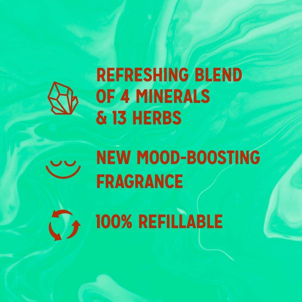 RADOX Mineral Therapy Feel Refreshed Shower Gel's mood-boosting fragrance combines the invigorating scent of eucalyptus with the zesty tang of citrus oil to make you feel delightfully refreshed. This refreshing skin cleanser features our unique blend of 4 minerals and 13 herbs, which activates with hot water to transform your shower into a mineral therapy ritual. Suitable for daily use, our body wash rinses off easily, leaving your skin feeling fresh and clean. What’s more, you’ll use 74% less plastic by refilling your RADOX 225 ml shower gel bottle with this pouch. The RADOX bottles have a twist-off cap so it’s easy to pour into them, fuss-free! To recharge your skin with new energy.