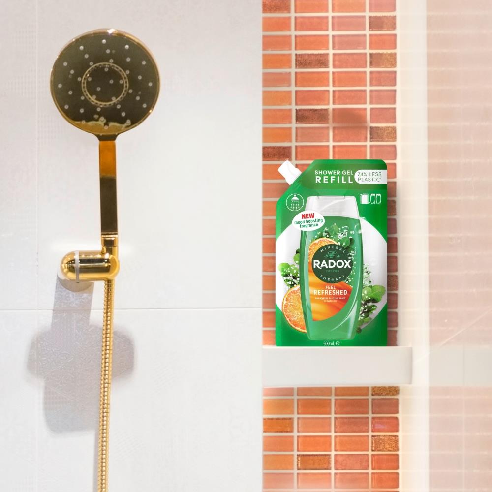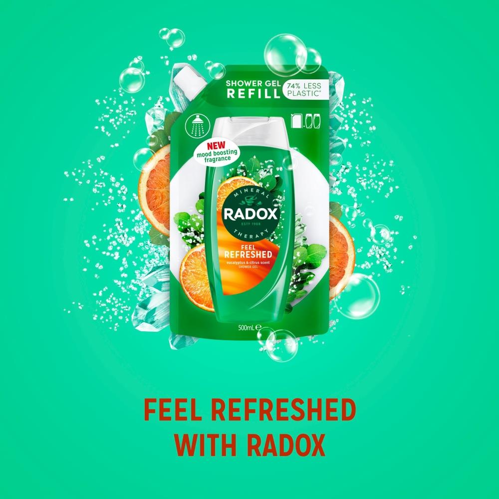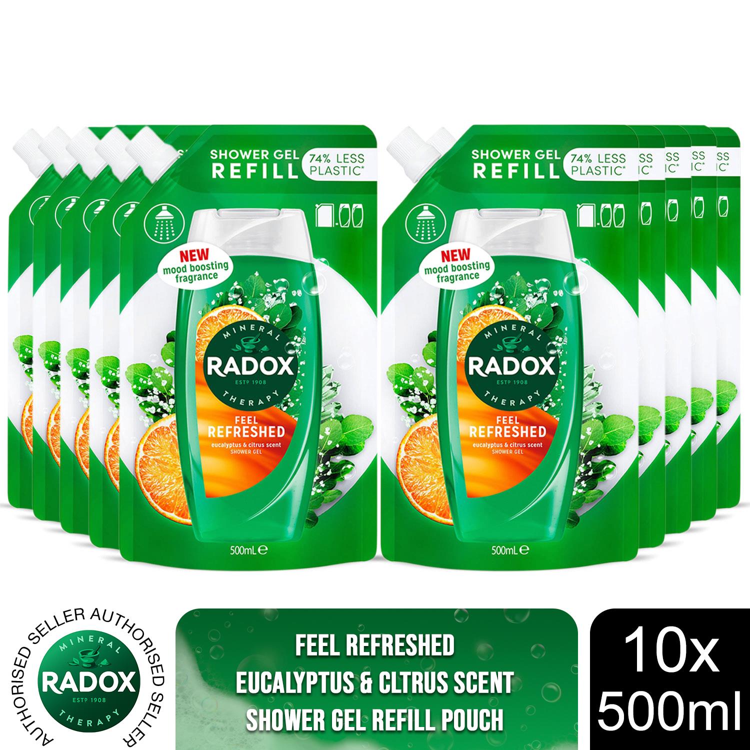 Box Contains: 10x Radox Shower Gel Refill Pouch Feel Refreshed, 500ml