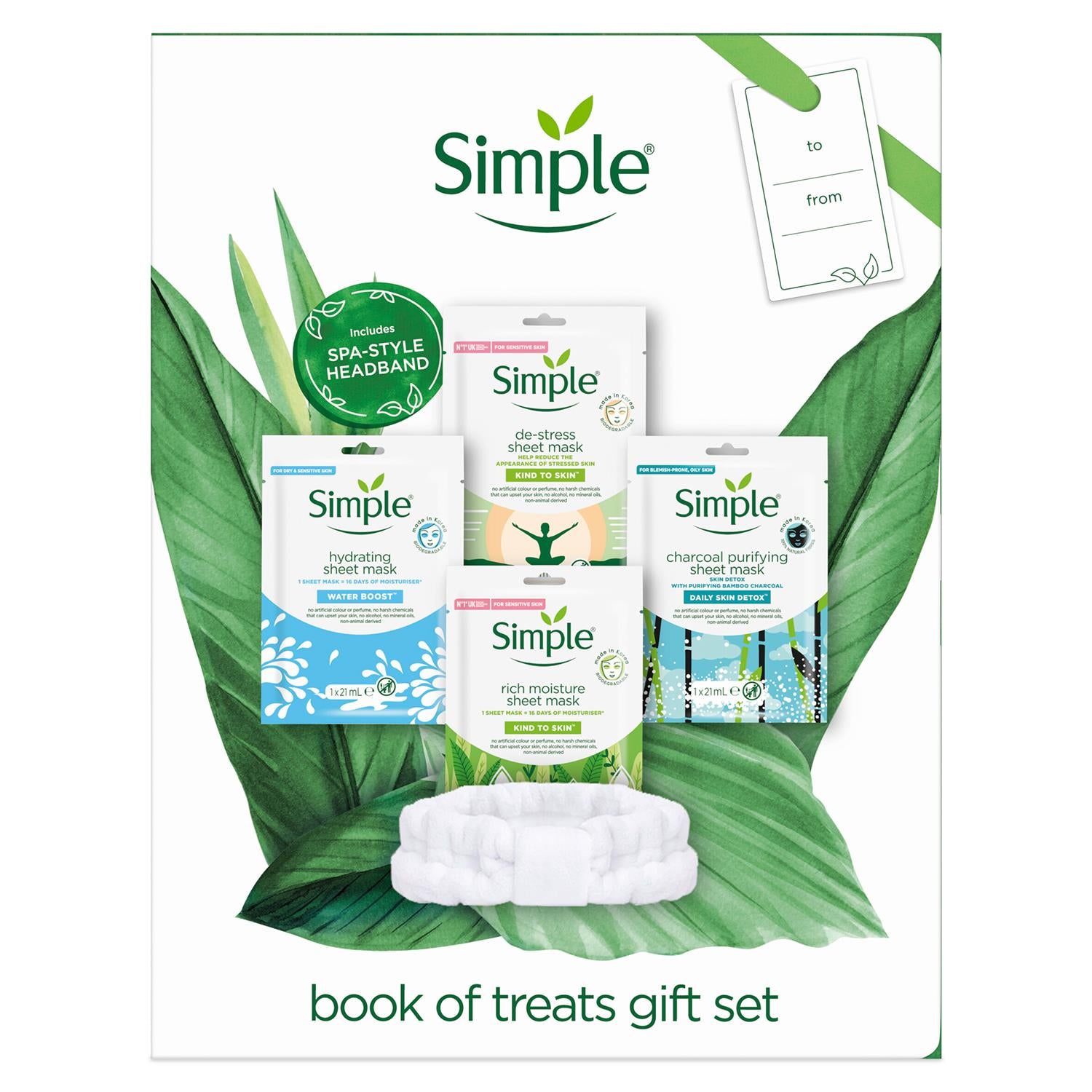 Know someone who is totally and utterly into taking care of their skin in the kindest way possible? The Simple Book of Treats Gift Set will make their entire day. At Simple, we understand that all skin can be sensitive at times. Right from the get-go, the Simple philosophy has always been about being kind to skin, even the most sensitive. That's why this set of gifts features an abundance of Simple sheet masks that ensure keeping skin protected, detoxified and healthy-looking as it should be