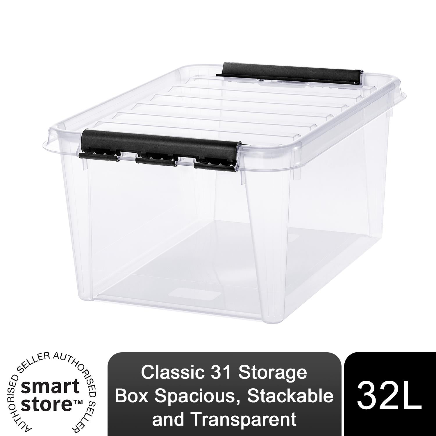 Spacious storage box for all-around storage in the hallway or storage room. Ideal size for storing seasonal clothes, shoes, blankets and pillows. Containers nest without lids and stack with them on. The sturdy clips keep the lid firmly in place. The clips are made of recycled plastic. Features: Ideal For Storing Seasonal Clothes, Shoes, Blankets And Pillows In a Hallway Or Storage Room The Storage Divider Inserts Make It Easy To Keep Things Separate Inside The Box The Clips On The Sides Secure The Lid Firmly In Place Made By Polypropylene Material Specifications: Outer Measurements: 39 X 50 X 26 Cm Inner Measurements: 30.7 X 40 X 22.1 Cm Material: Polypropylene Volume: 32L Box Contains: SmartStore Classic 31 Storage Box, 32L