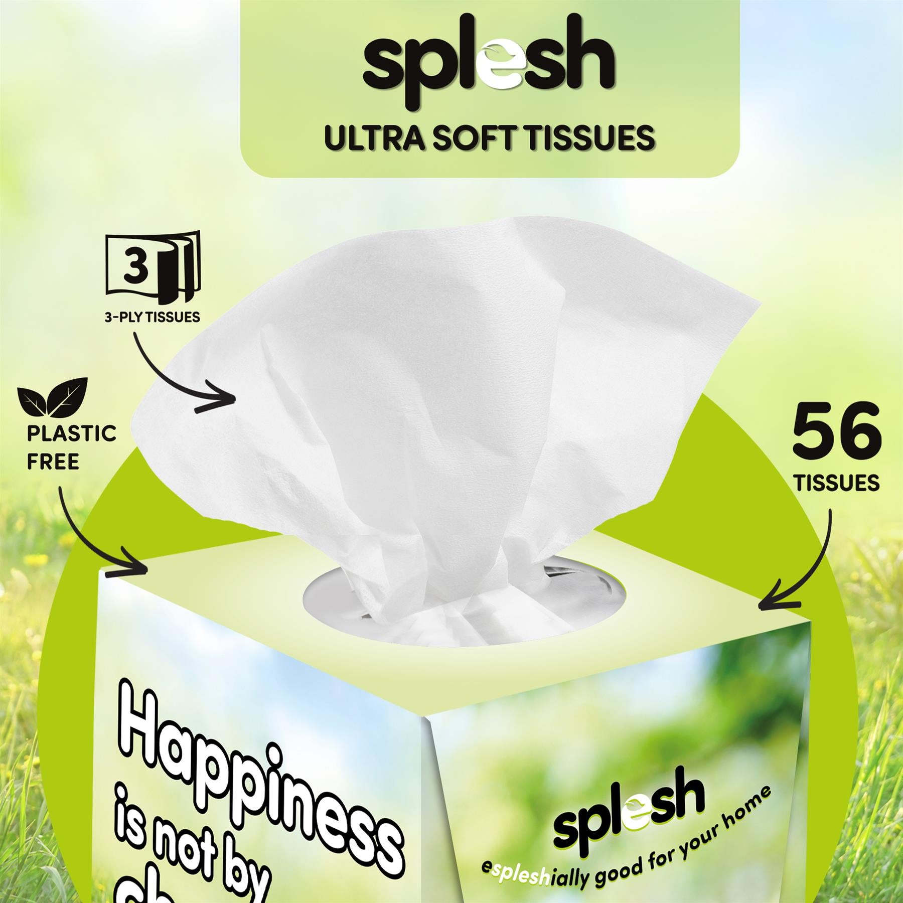 Package Includes: Splesh Ultra Soft 3-Ply Tissues, 12 Boxes of 56 Tissues (Total 672 Sheets)