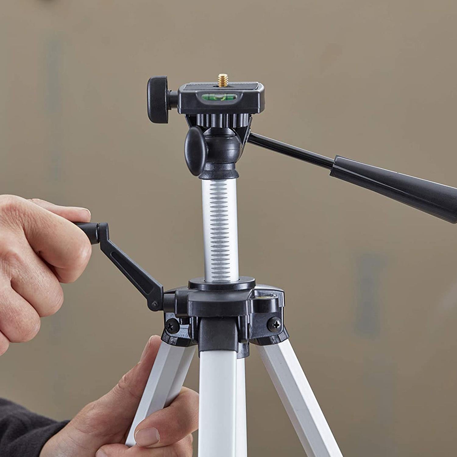 The Stanley Intellilevel Tilting Head Camera Tripod extends between 44 - 119cm in height. It is compact and stable with a tilting plate for wider versatility and integrated levelling.
