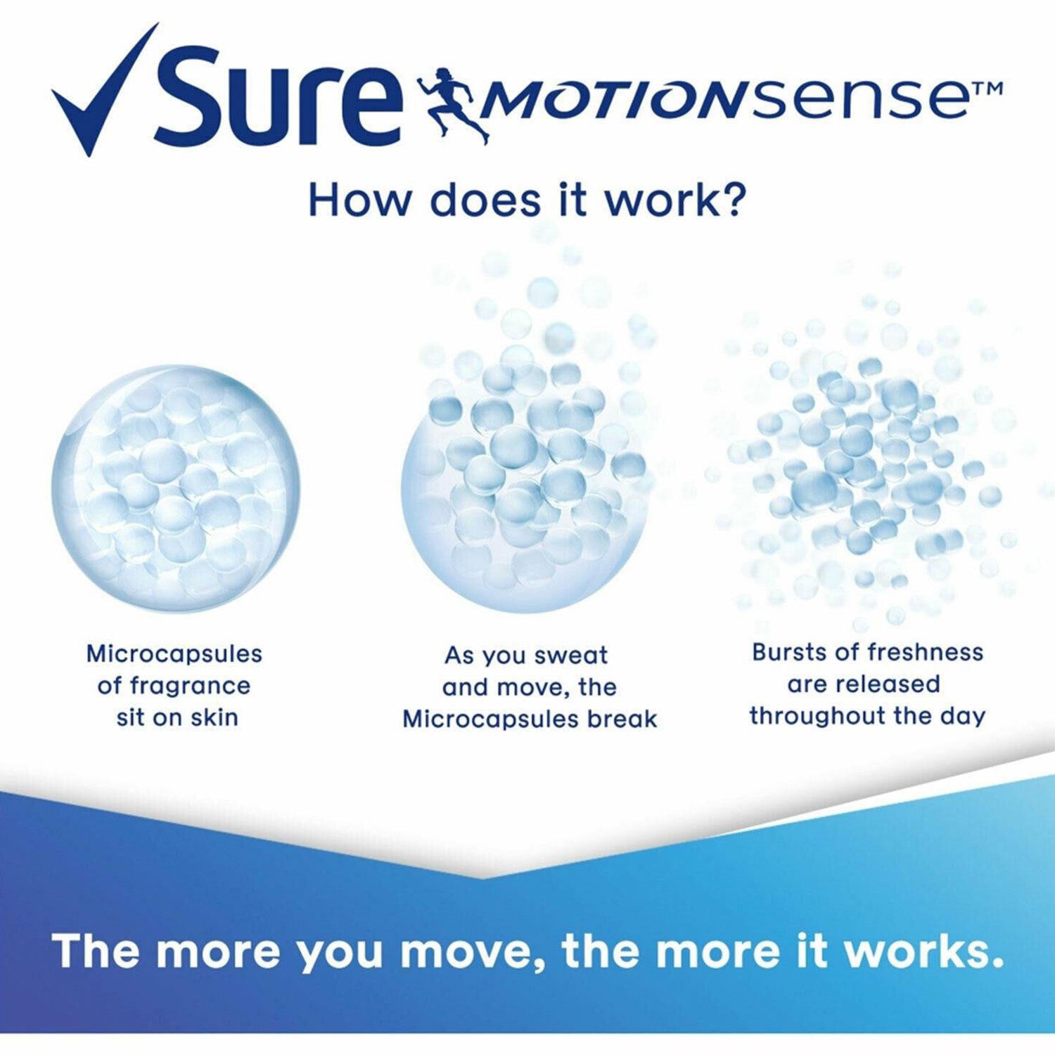 - It also contains Sure’s innovative Motionsense technology. It works like this unique microcapsules sit on the surface of your skin.