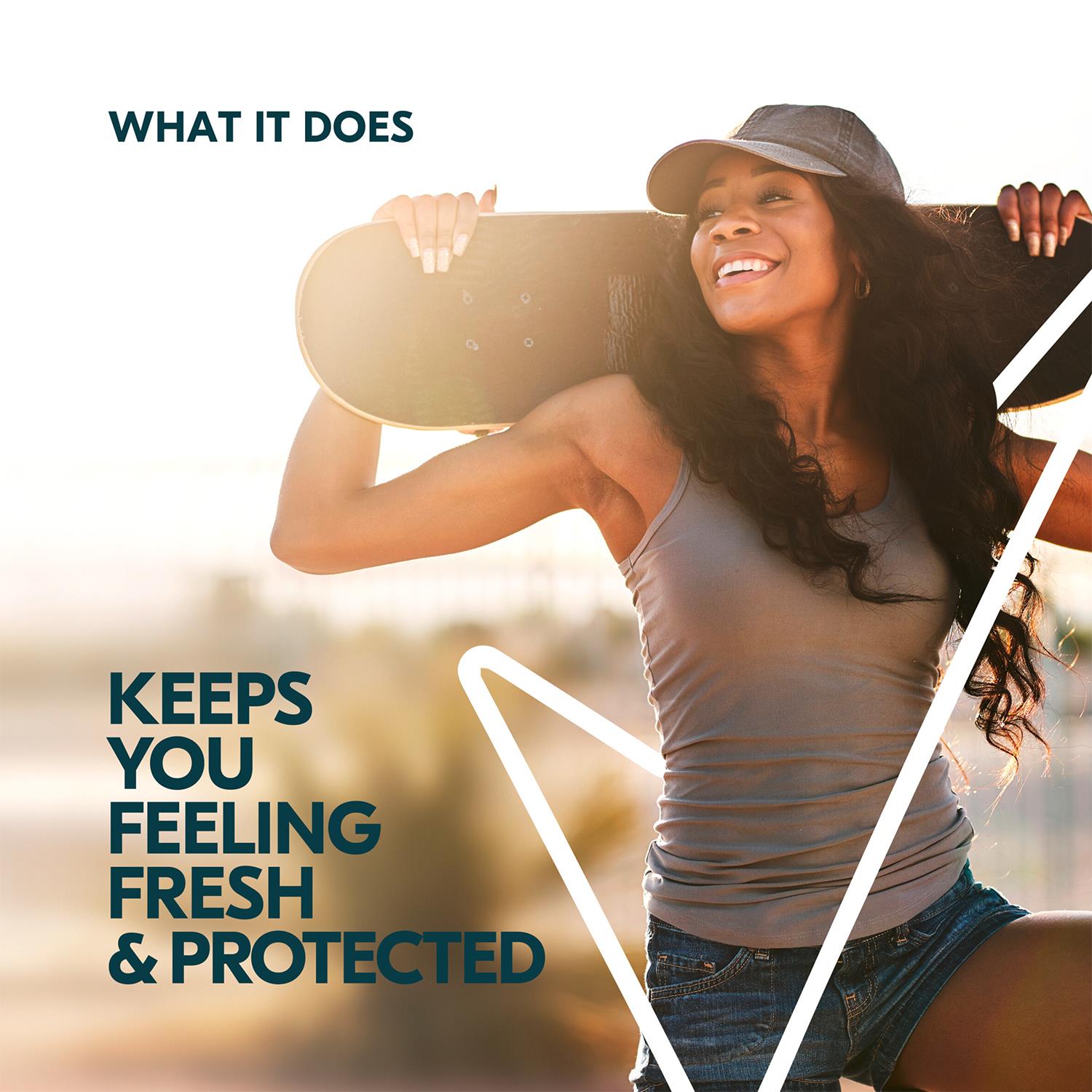 - A clean, fresh scent to keep you feeling dryer and confidence all day long.