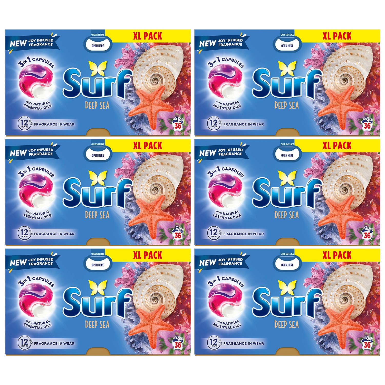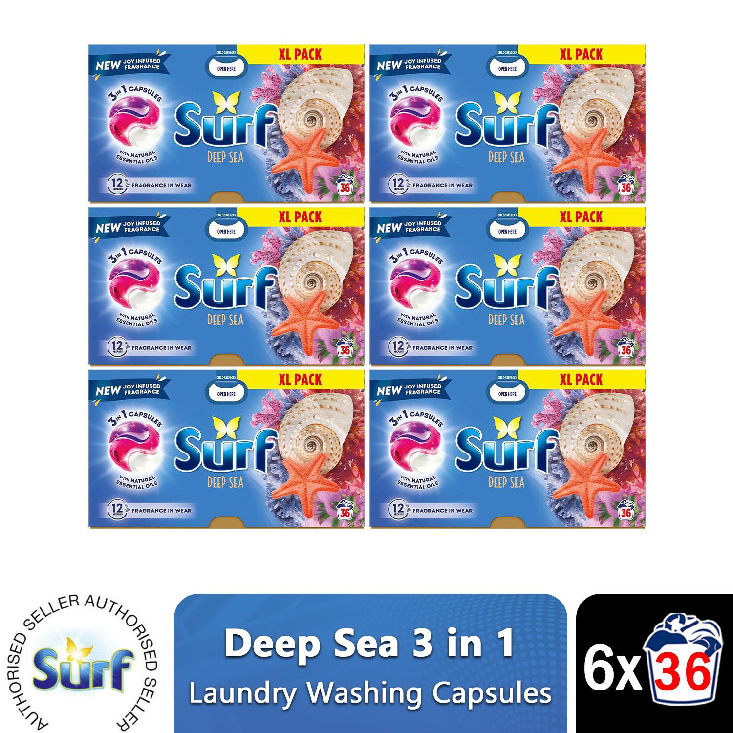 Box Contains: Surf 3 in 1 Deep Sea Laundry Washing Detergent Capsules, 216 Washes