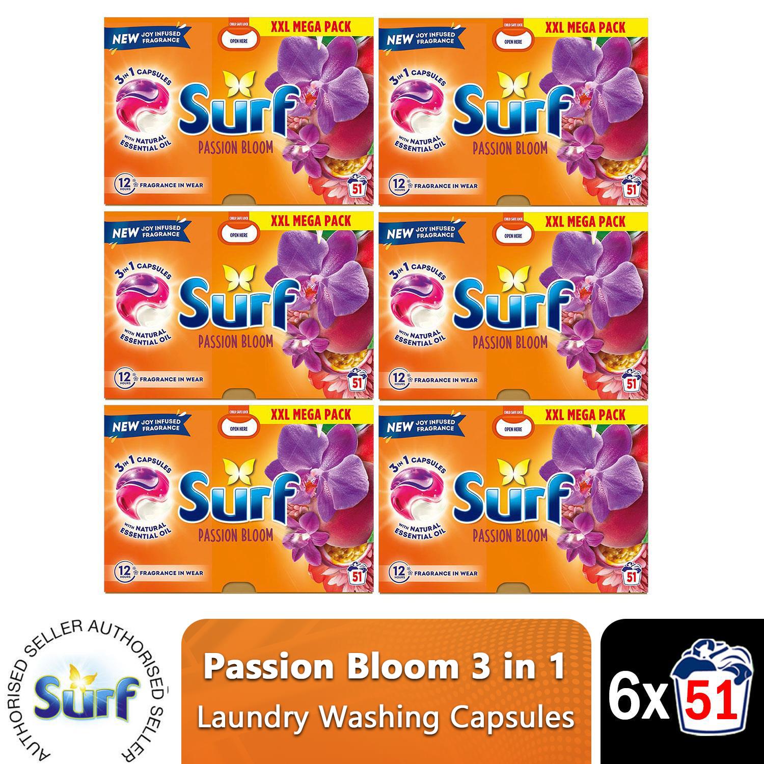 Box Contains: Surf 3in1 Passion BloomLaundry Washing Detergent Capsules, 306 Washes