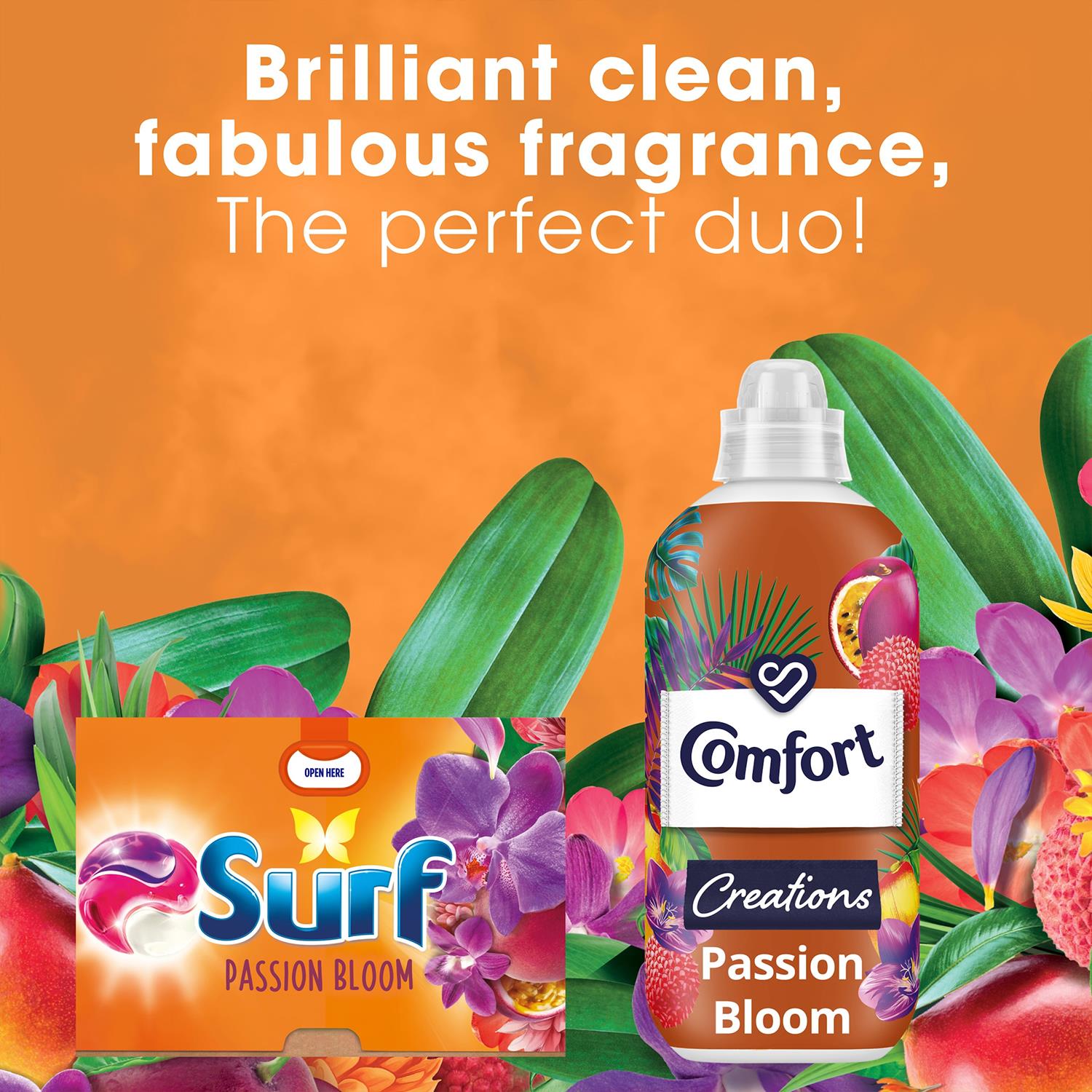 Surf Passion Bloom Laundry Capsules bring the sassy scents of passion fruit, flowers, mango and guava right into your laundry basket. With our joyfully jazzy blend of exotic flowers and natural essential oil, your clothes aren’t just fresh; they are on a fragrance fiesta that lasts from dawn to dusk, giving you up to 12 hours of in-wear delight. Our laundry detergent capsules dissolve fast even in quick and cold washes, delivering a brilliant clean with bursts of fabulous fragrance long after you’ve washed your clothes. You can rest assured your laundry will be brilliantly clean and fresh for longer with these dermatologically tested washing detergent capsules from the UK’s No.1 fragrance detergent brand.