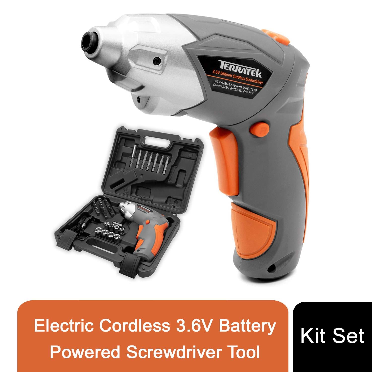 Terratek Electric Cordless 3.6V Battery Powered Screwdriver & Tool Kit Set