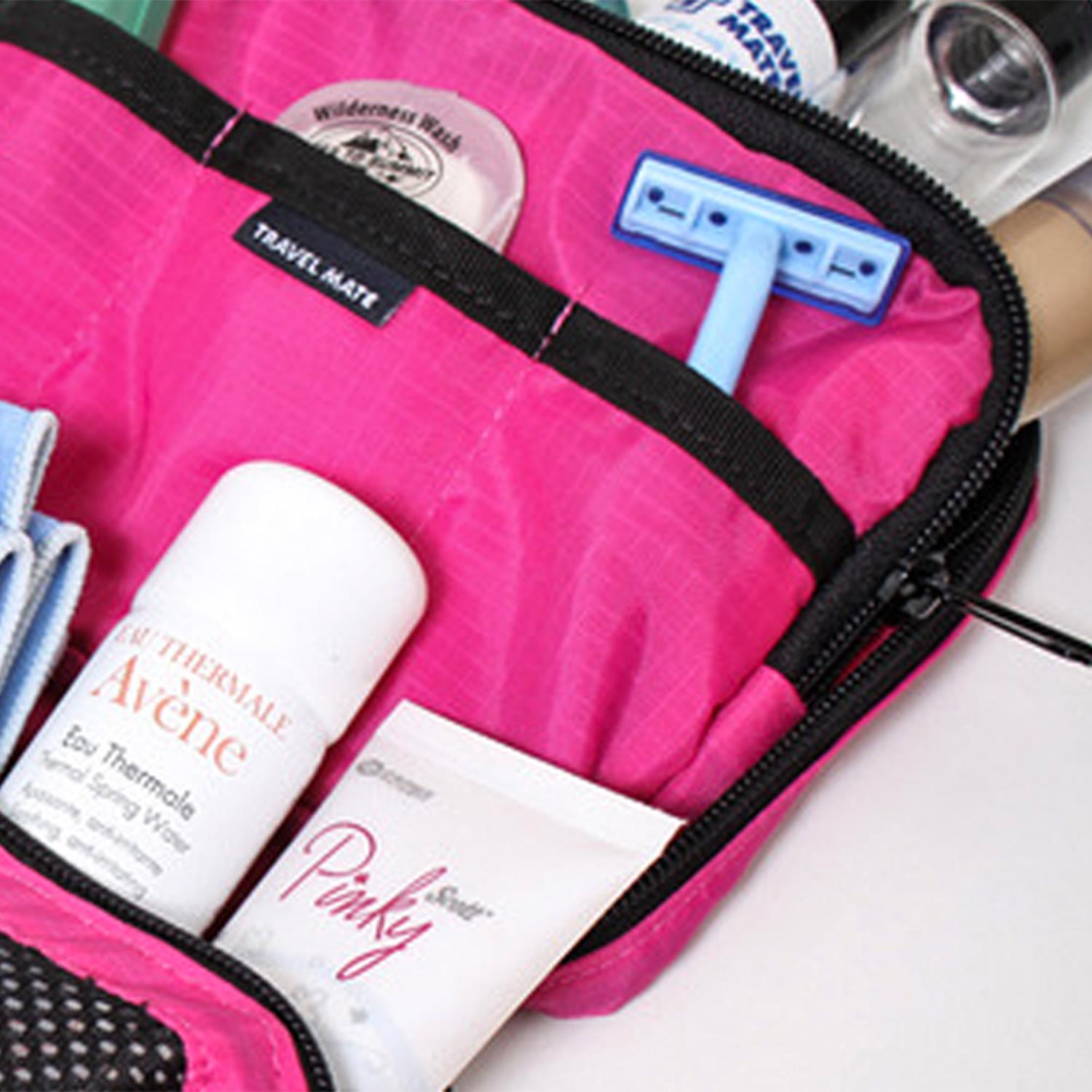 Travel Mate Water-resistant Portable Cosmetic Makeup Hanging Bag - Hot Pink