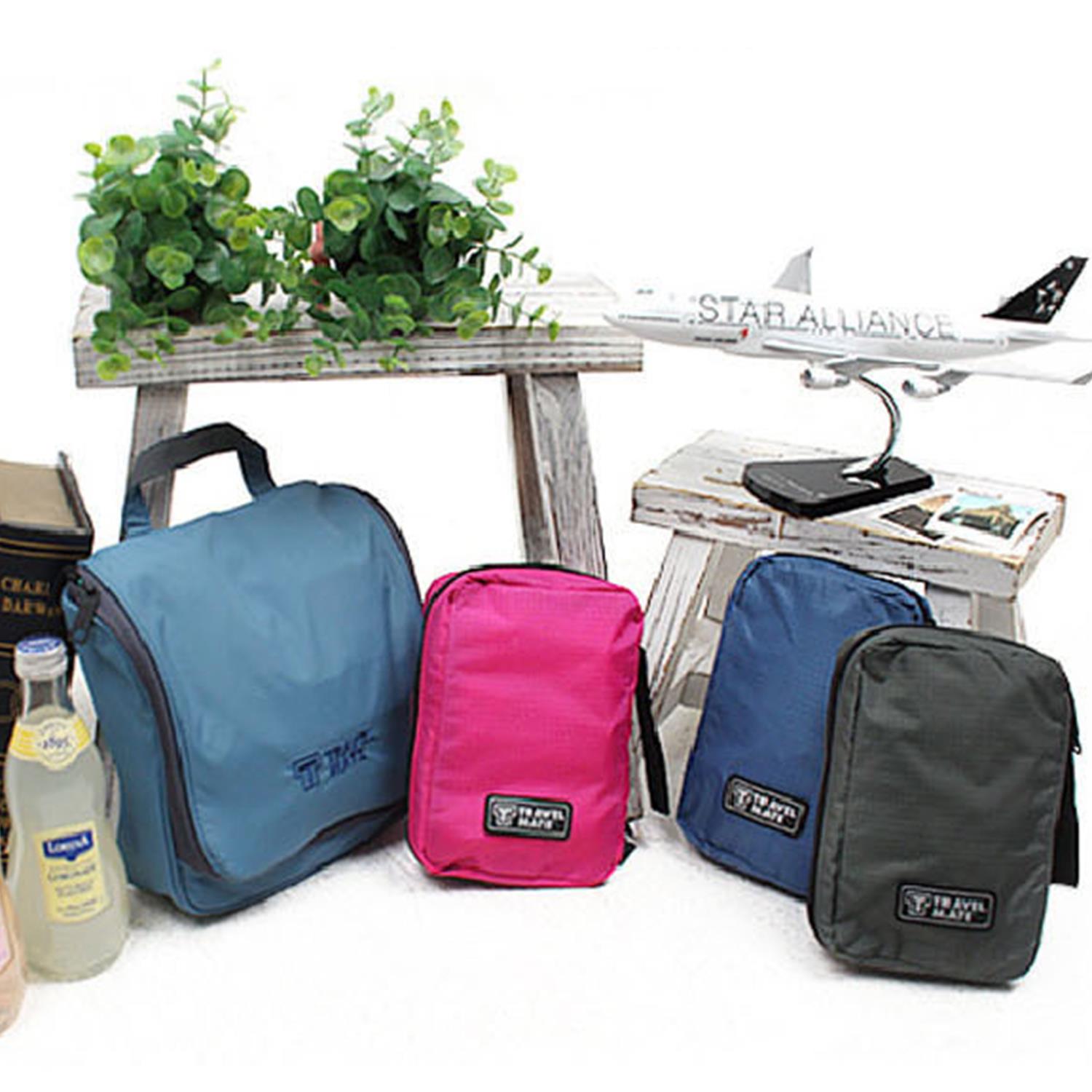 band-aid, swaps or lipstick; 3 elastic bags side-by-side; another main breathable mesh bag; a transparent waterproof bag. It's easy for you to put all your toiletries in, and the bag will keep them safe, neat and organized;9.7 * 6.3 * 3.2 inch