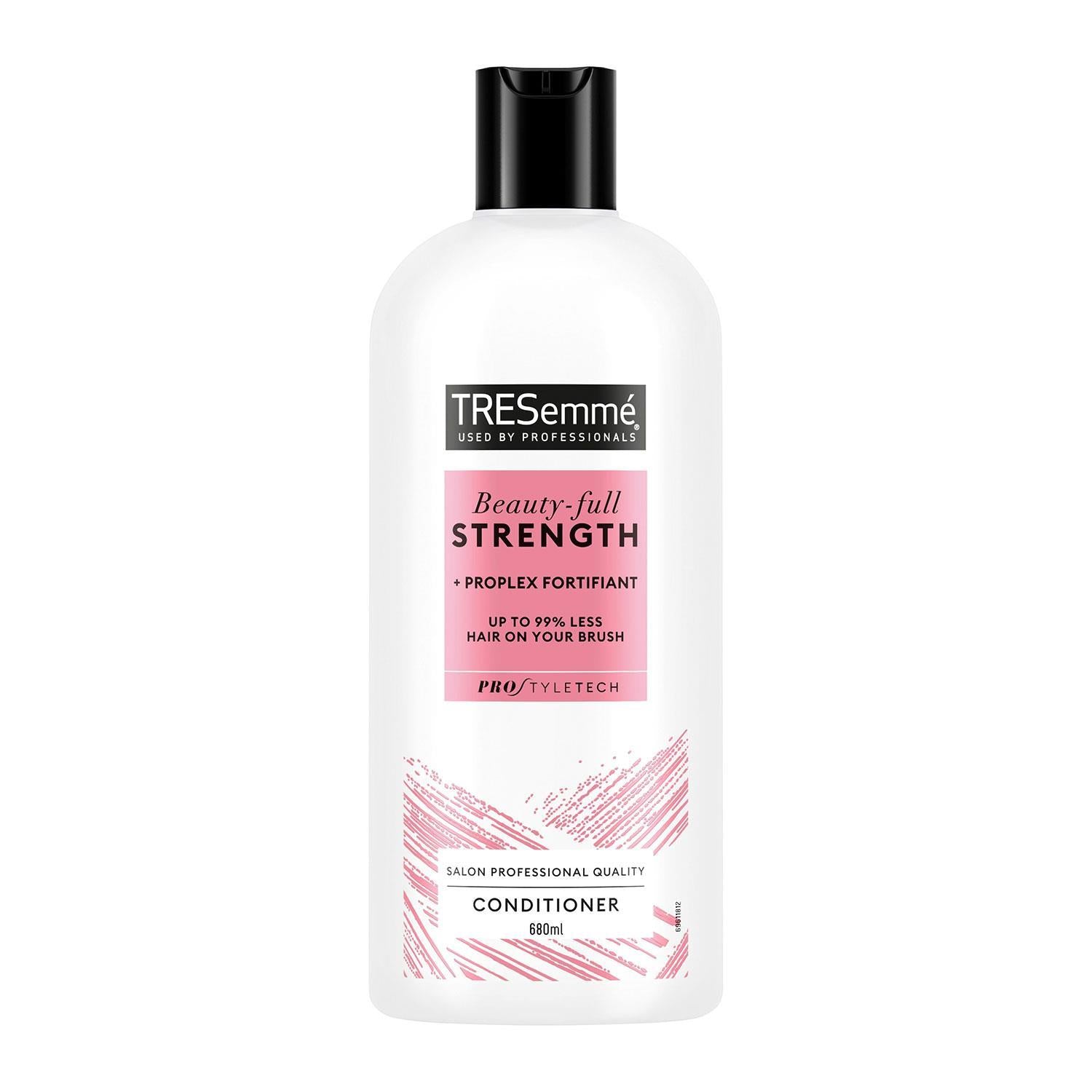 Tresemme Conditioner Beauty-Full Strength Formulated for Damaged Hair, 3x 680ml There�s something about strong, full-looking hair that lets you take on the day with confidence. You can now get that style without having to go to a salon with Tresemme Beauty-Full Strength Conditioner, designed to leave your hair looking fuller and feeling fortified. Featuring ProPlex Fortifiant, this professional-quality conditioner for damaged hair penetrates inside the hair fibre to reinforce its structure from within, resulting in up to 99% less hair on your brush. its fortifying formula uses our PRO Style Technology with amino acids and ceramides to leave your hair strong and manageable with continuous use. For naturally fuller-looking hair that feels reinforced, start your routine with Tresemme Beauty-Full Strength Shampoo. Then, squeeze a generous amount of Beauty-Full Strength Conditioner into the palms of your hands and distribute evenly through damp hair, focusing on ends to mid-lengths first and working any remaining conditioner up toward the roots. Leave on for 2�3 minutes, then rinse thoroughly. Style with your favourite Tresemme styling products as needed. At Tresemme, we�ve always understood that style is more than a look: it�s a part of you. With our professional-quality care, a world of style possibilities is yours to achieve. Every choice we make at Tresemme, from the values we promote � such as not testing on animals and being PETA approved. Pack of 3
