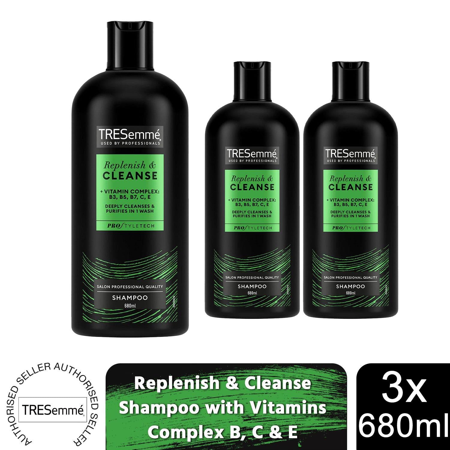 Treat your locks to a clean slate with Tresemme Replenish & Cleanse Shampoo. Infused with vitamin C, this shampoo for greasy hair removes build-up and heavy residue that can weigh your hair down and diminish its natural shine, leaving you with that just-left-the-salon feeling. Our cleansing shampoo is gentle enough for daily use, so you can reveal fresh, clean hair every single day and look the way you want to. At Tresemme, we�ve always believed that style is an important part of who you are, and embracing your personal style helps you achieve whatever it is you set out to do. Tresemme�s expertise in professional-quality hair care and styling products means that everyone can achieve salon results at home and own their personal style. Every choice we make is informed by our brand values and the latest salon trends. Our unique formulas are the result of years of consumer and scientific research, with every ingredient having been carefully selected to ensure your hair receives the best possible care and end look. Tresemme�s entire portfolio is globally approved by PETA, so you can own your personal style whilst knowing that we do not test on animals. Features: Tresemme Replenish & Cleanse Shampoo is designed to deeply cleanse and purify hair, removing build-up and heavy residue Enriched with vitamin C, this cleansing shampoo for greasy hair revitalises from within to add healthy body and gleam This professional-quality shampoo gives your hair that fresh, just-left-the-salon feeling Our hair care experts are at the forefront of science and safety � every ingredient is carefully selected to ensure your hair receives the best possible care How to Use: Start your routine by applying a generous amount of Tresemme Replenish & Cleanse Shampoo to wet hair. Gently massage the scalp with your fingertips to work into a lather, then rinse thoroughly. Follow with our Replenish & Cleanse Conditioner and style with your favourite Tresemme styling products as needed. Ingredients: Aqua, Sodium Laureth Sulfate, Cocamidopropyl Betaine, Sodium Chloride, Parfum, Sodium Benzoate, Citric Acid, Polyquaternium-10, Disodium EDTA, Arginine, Lysine HCl, Panthenol, Niacinamide, Ascorbic Acid, Tocopheryl Acetate, Biotin, Ceramide NG, PPG-6, Sodium Hydroxide, Hexyl Cinnamal, Limonene, Linalool, CI 61570 Safety Warnings: Avoid contact with eyes. In case of contact with eyes, rinse thoroughly with water.