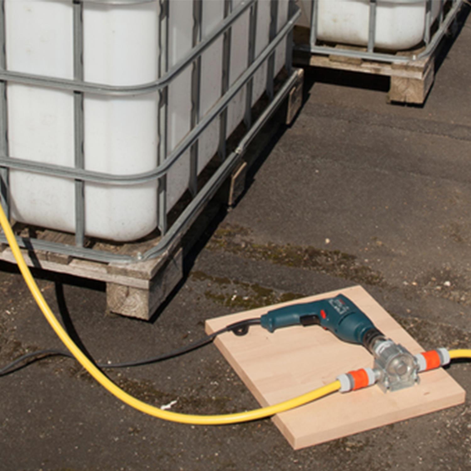 The compact self-priming pump from wolfcraft has a metal casing and is ideal for fast and uncomplicated pumping of liquids. It is perfect for draining water beds or a water butt. The water pump works with commercially available power drills with at least 600 W. With its robust metal casing and strong pumping power, the universal pump is a durable, reliable helper and a compact, convenient alternative to larger garden pumps.