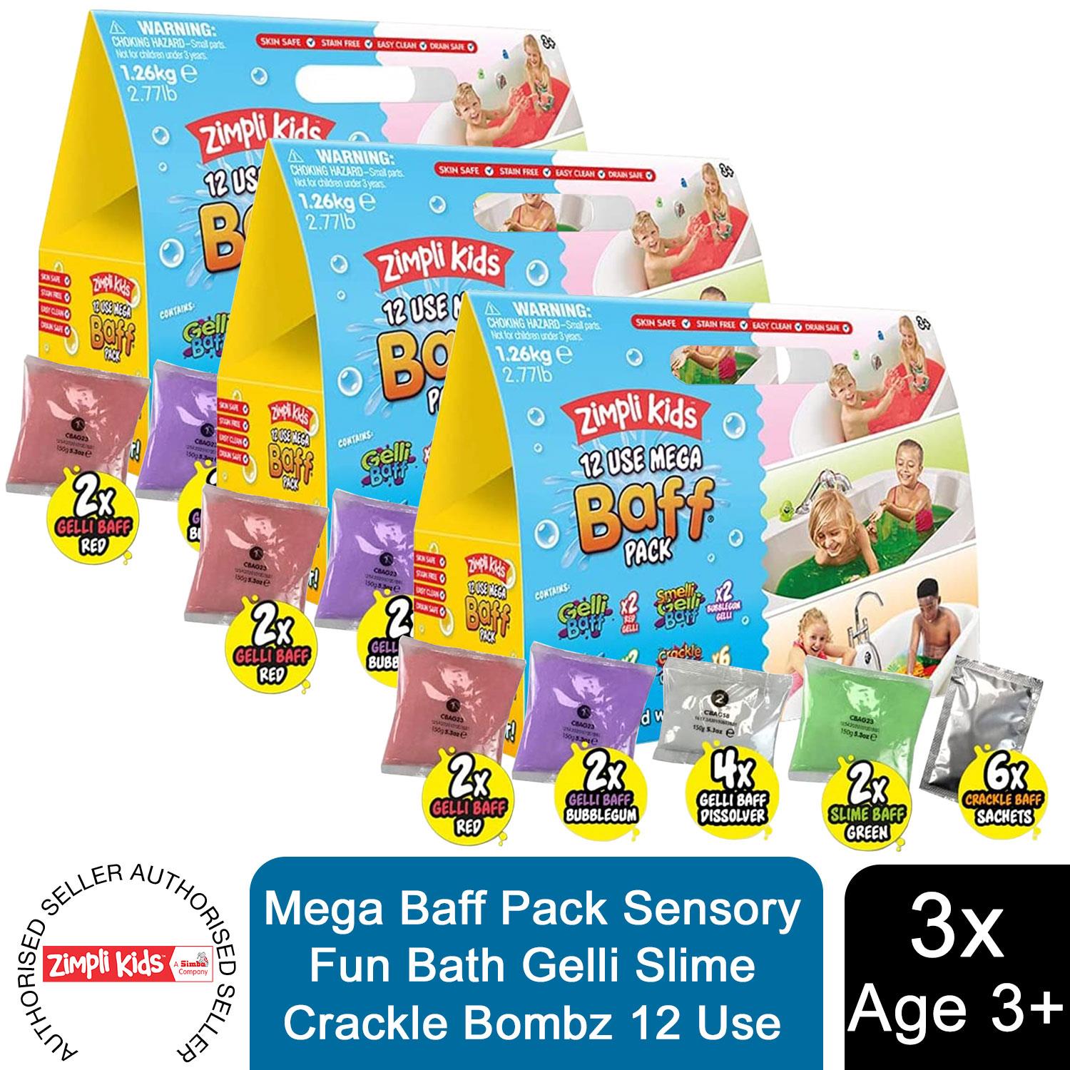 Zimpli Kids Mega Baff Pack Sensory Fun Bath Gelli Slime Crackle Bombz 12 Use